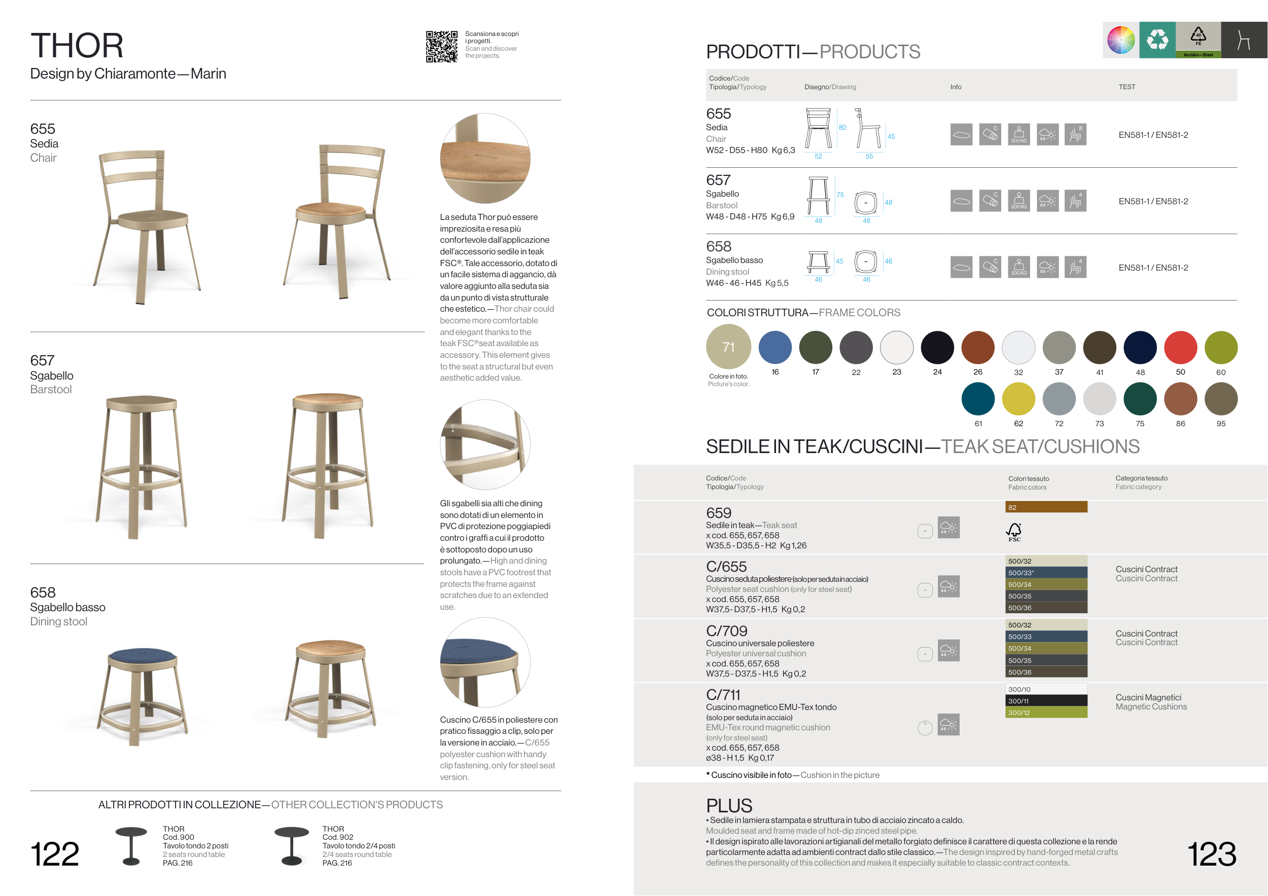 • Sedile in lamiera stampata e struttura in tubo di acciaio zincato a caldo.