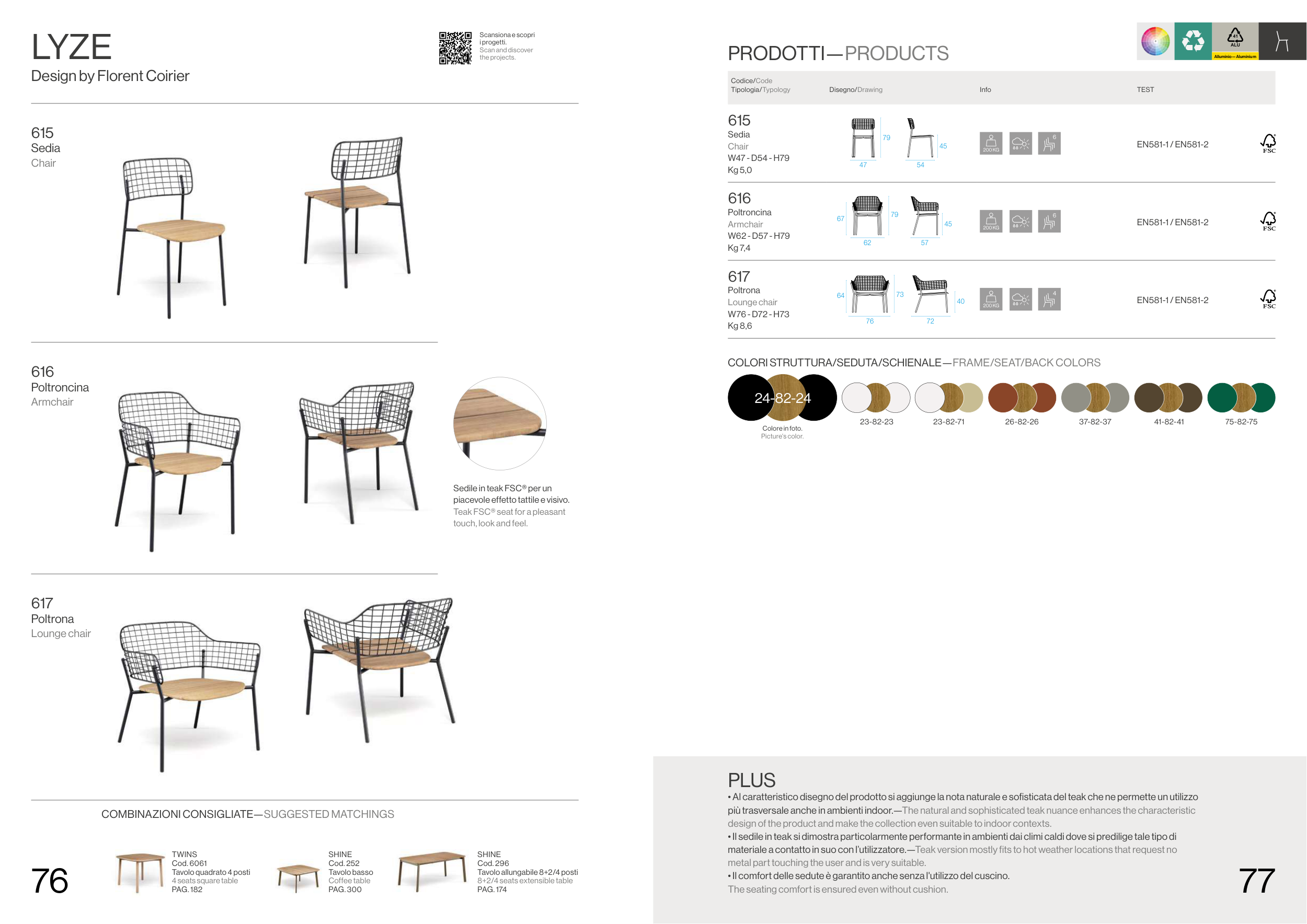 • Al caratteristico disegno del prodotto si aggiunge la nota naturale e sofisticata del teak che ne permette un utilizzo