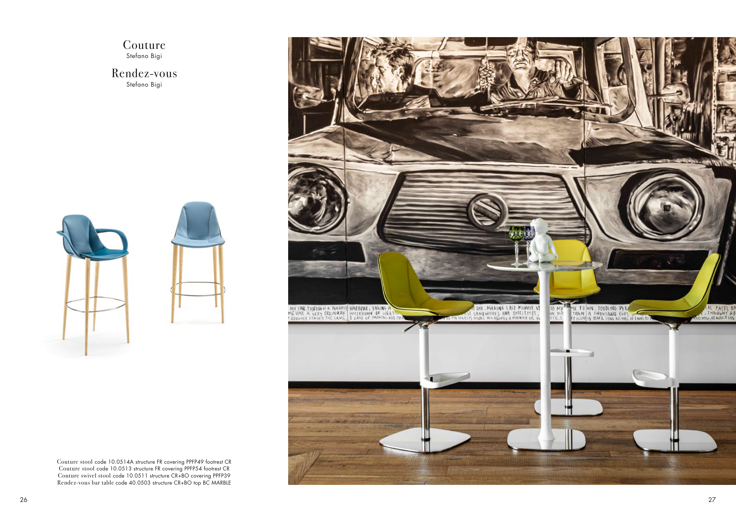Couture swivel stool code 10.0511 structure CR+BO covering PPFP39