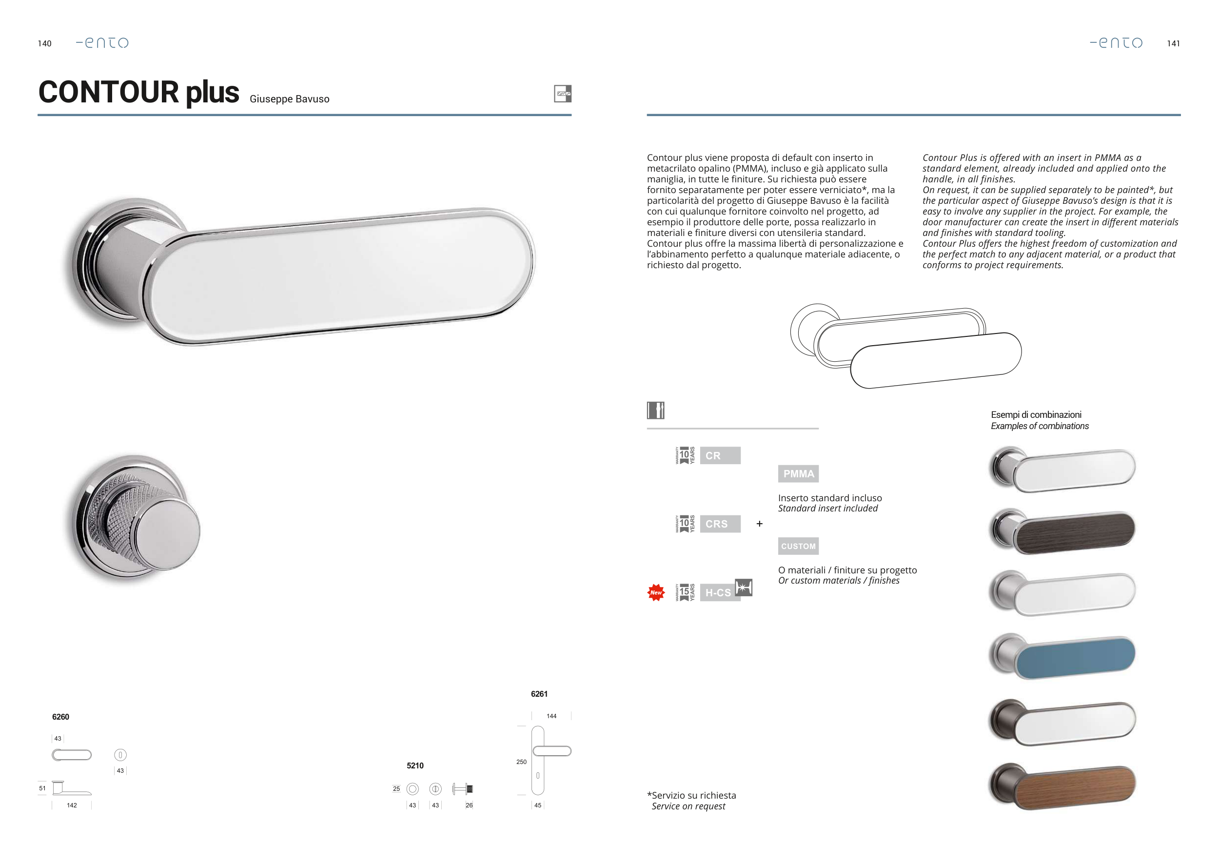 maniglia, in tutte le finiture. Su richiesta può essere