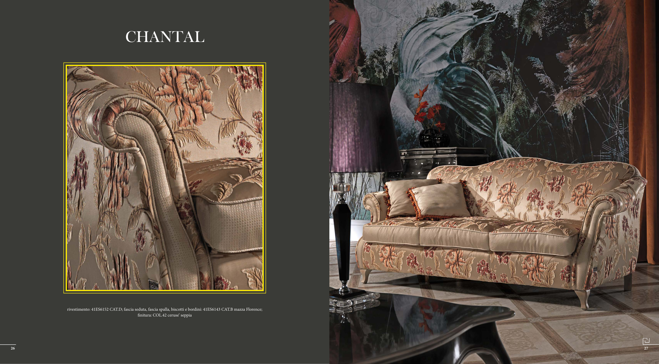rivestimento: 41ES6152 CAT.D; fascia seduta, fascia spalla, biscotti e bordini: 41ES6143 CAT.B mazza Florence;