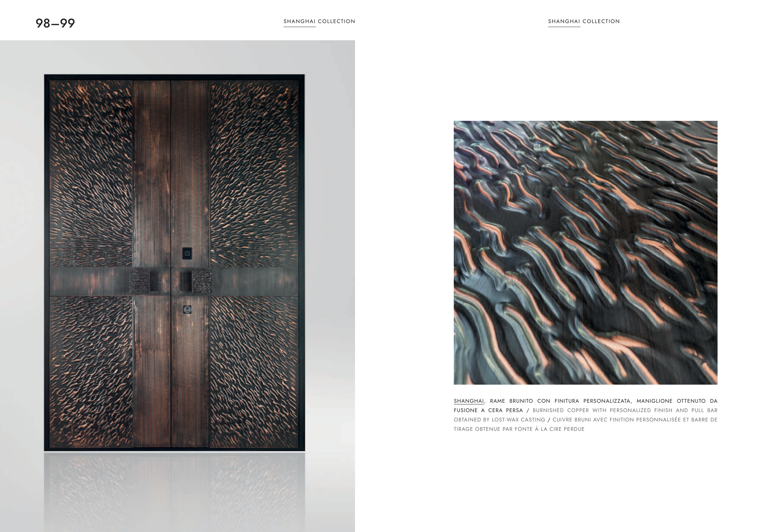 FUSIONE A CERA PERSA / BURNISHED COPPER WITH PERSONALIZED FINISH AND PULL BAR