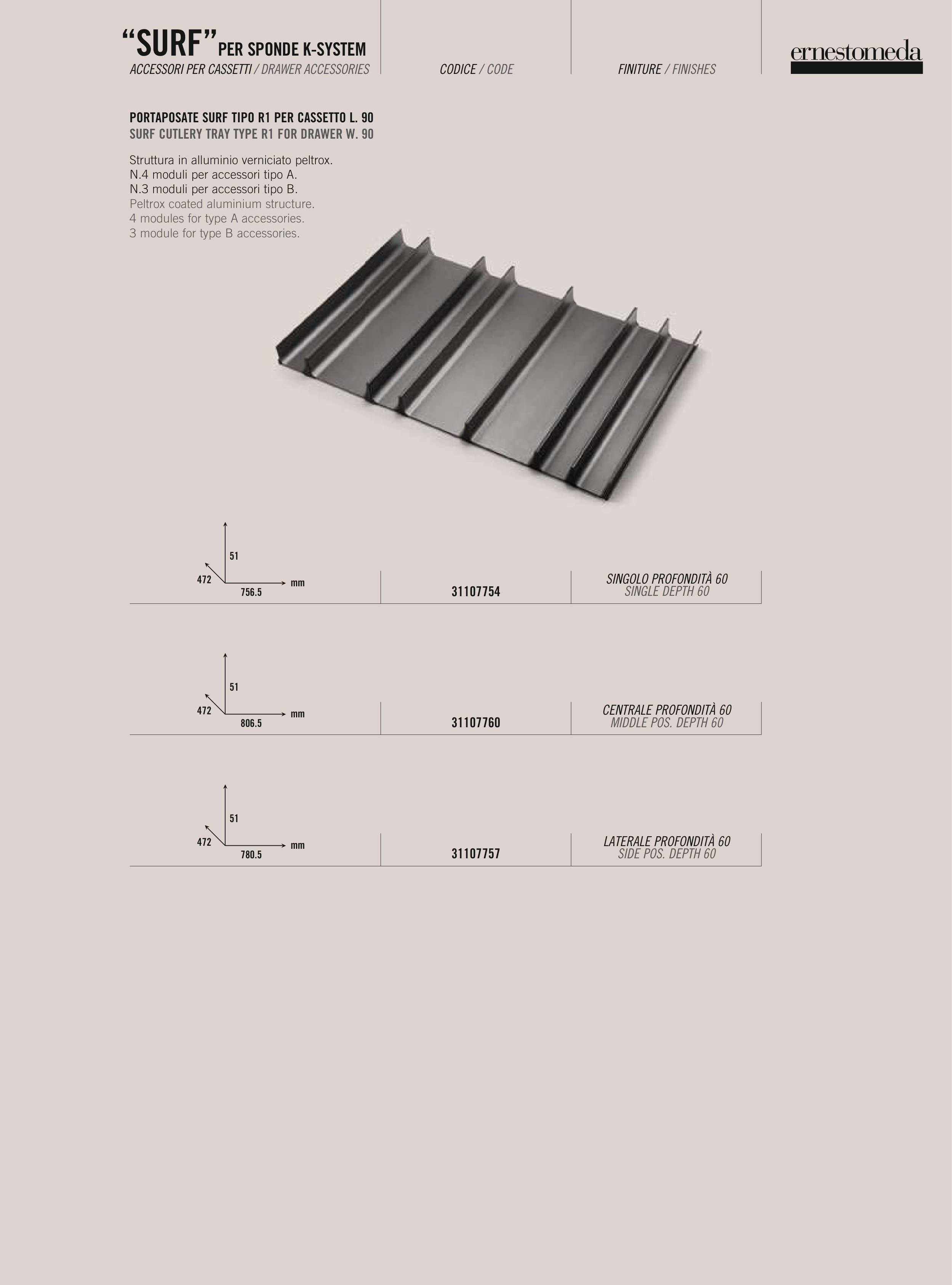 SURF CUTLERY TRAY TYPE R1 FOR DRAWER W. 90