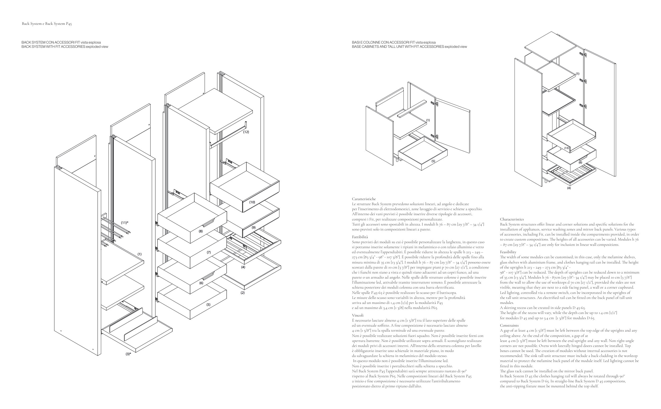 rispetto al Back System P65. Nelle composizioni lineari del Back System P45