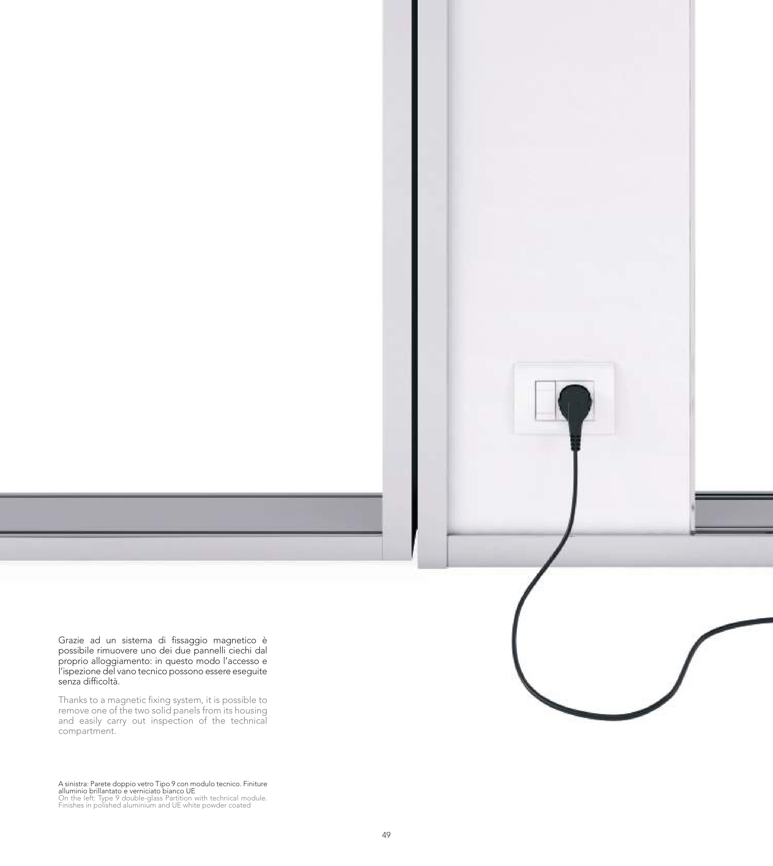 A sinistra: Parete doppio vetro Tipo 9 con modulo tecnico. Finiture