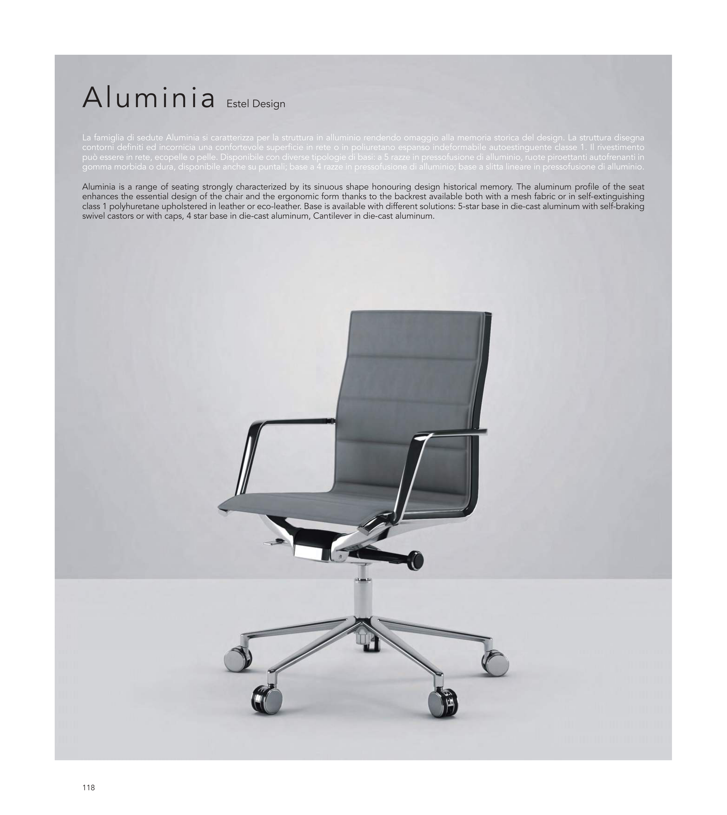 La famiglia di sedute Aluminia si caratterizza per la struttura in alluminio rendendo omaggio alla memoria storica del design. La struttura disegna