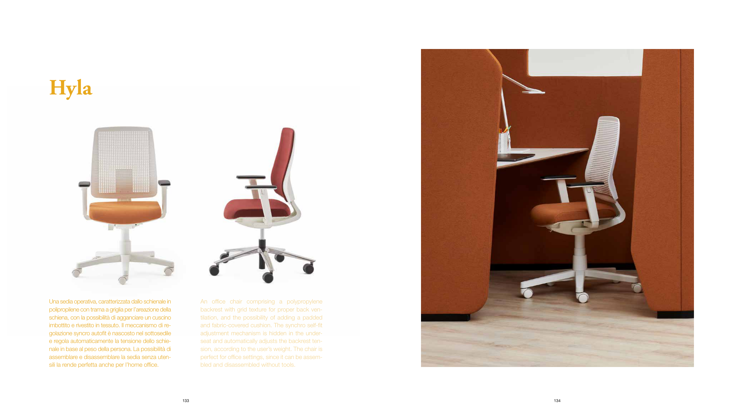 and fabric-covered cushion. The synchro self-fit