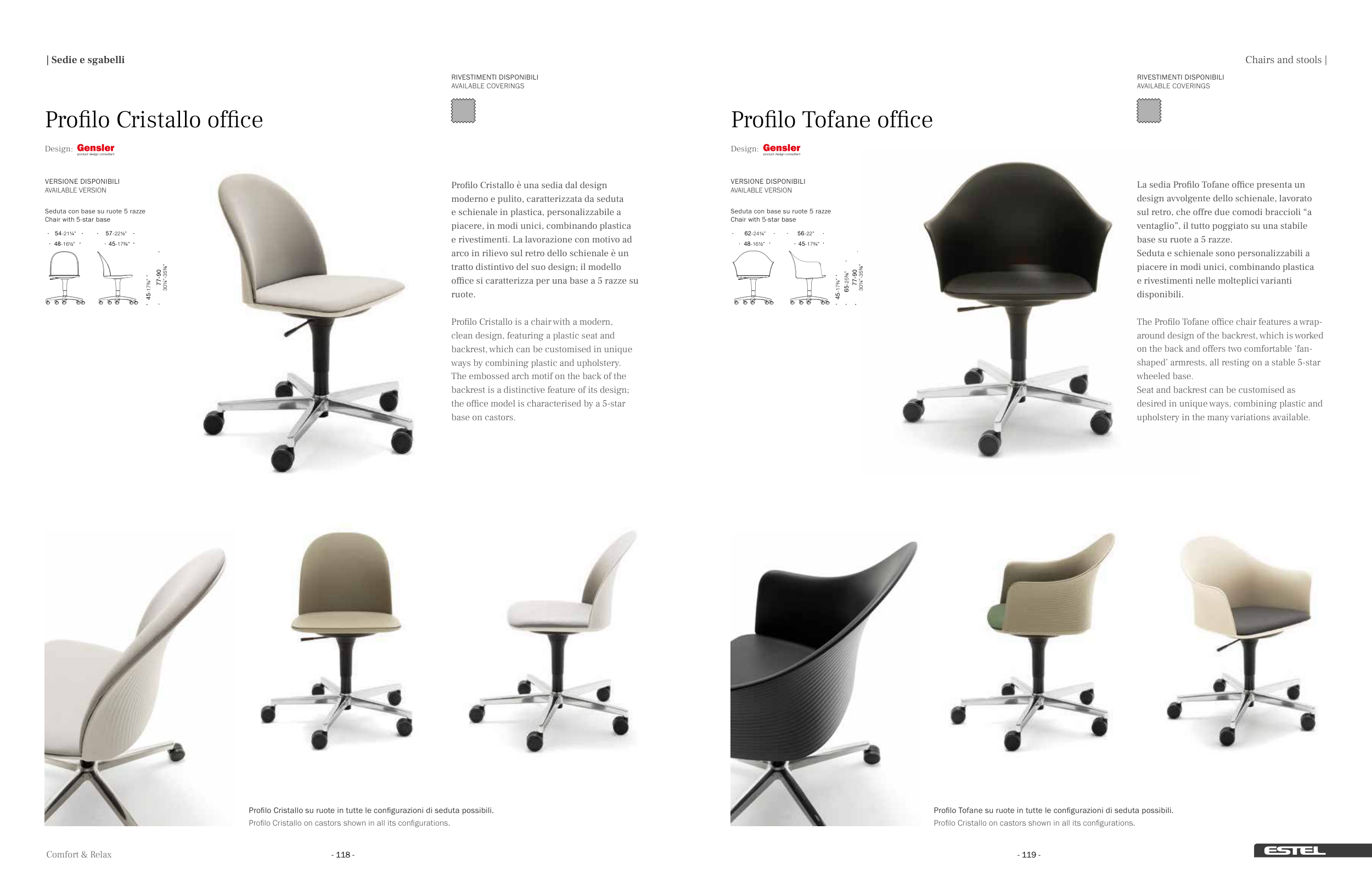Profilo Tofane su ruote in tutte le configurazioni di seduta possibili.