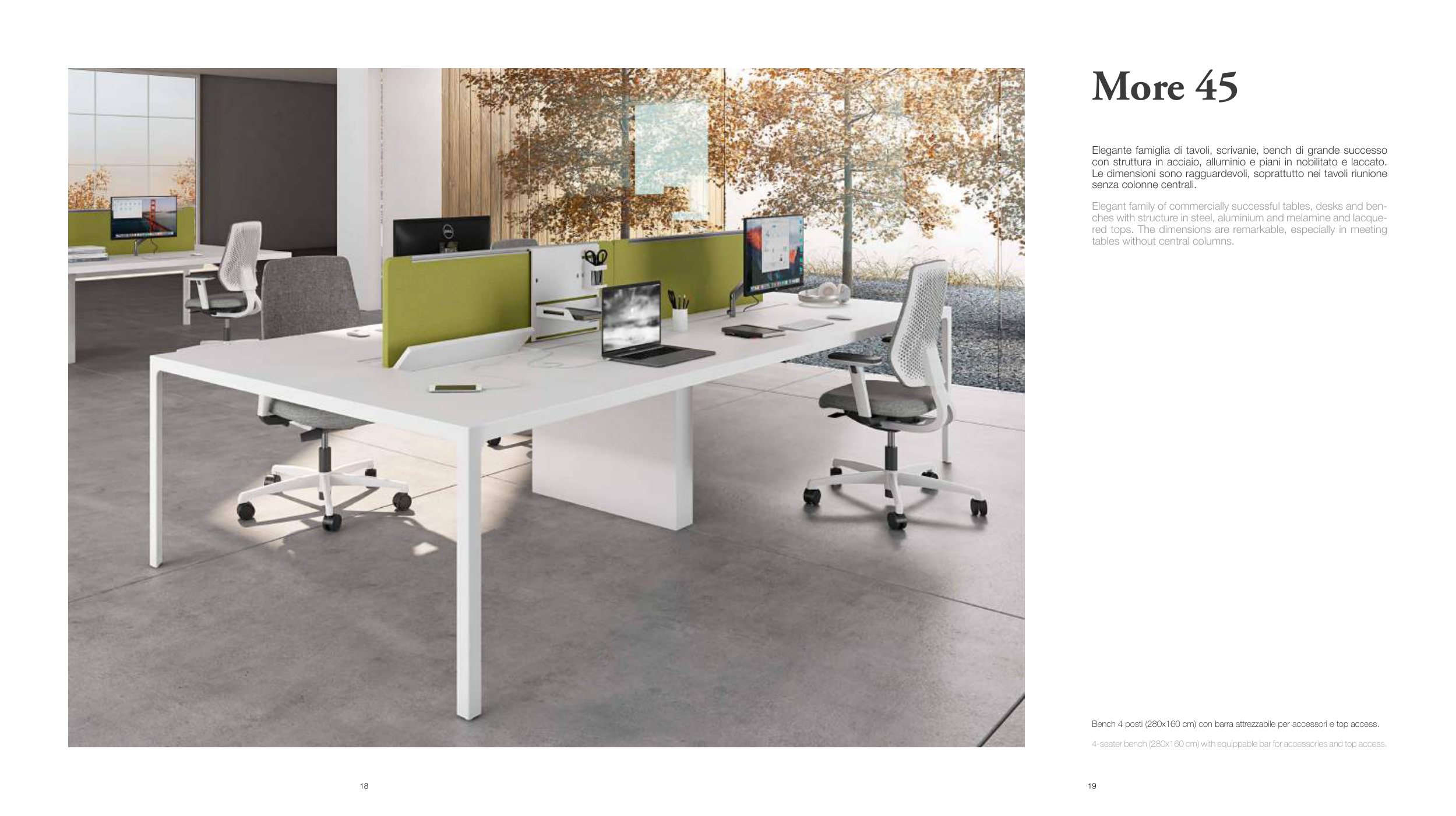 con struttura in acciaio, alluminio e piani in nobilitato e laccato.