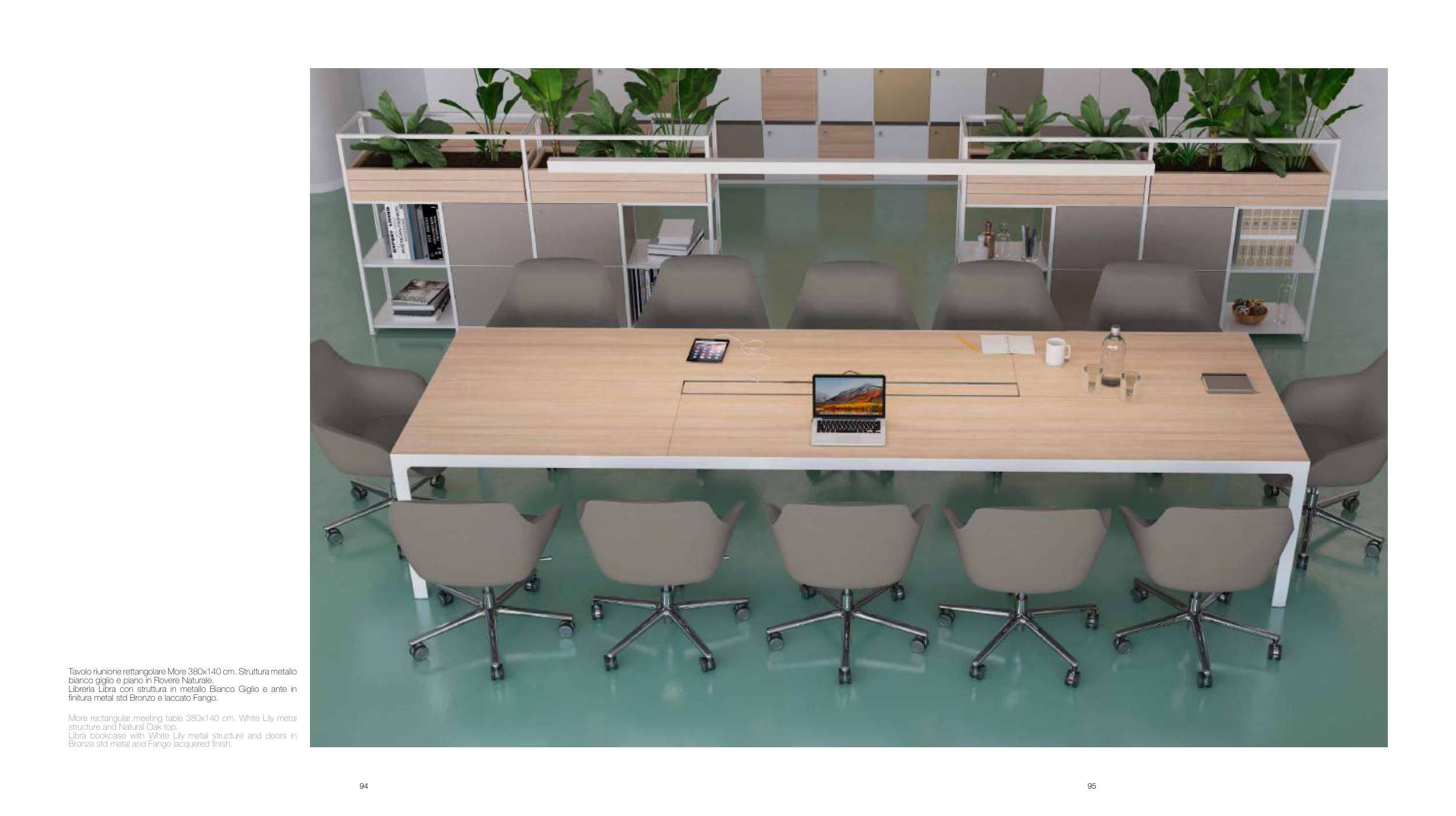 More rectangular meeting table 380x140 cm. White Lily metal