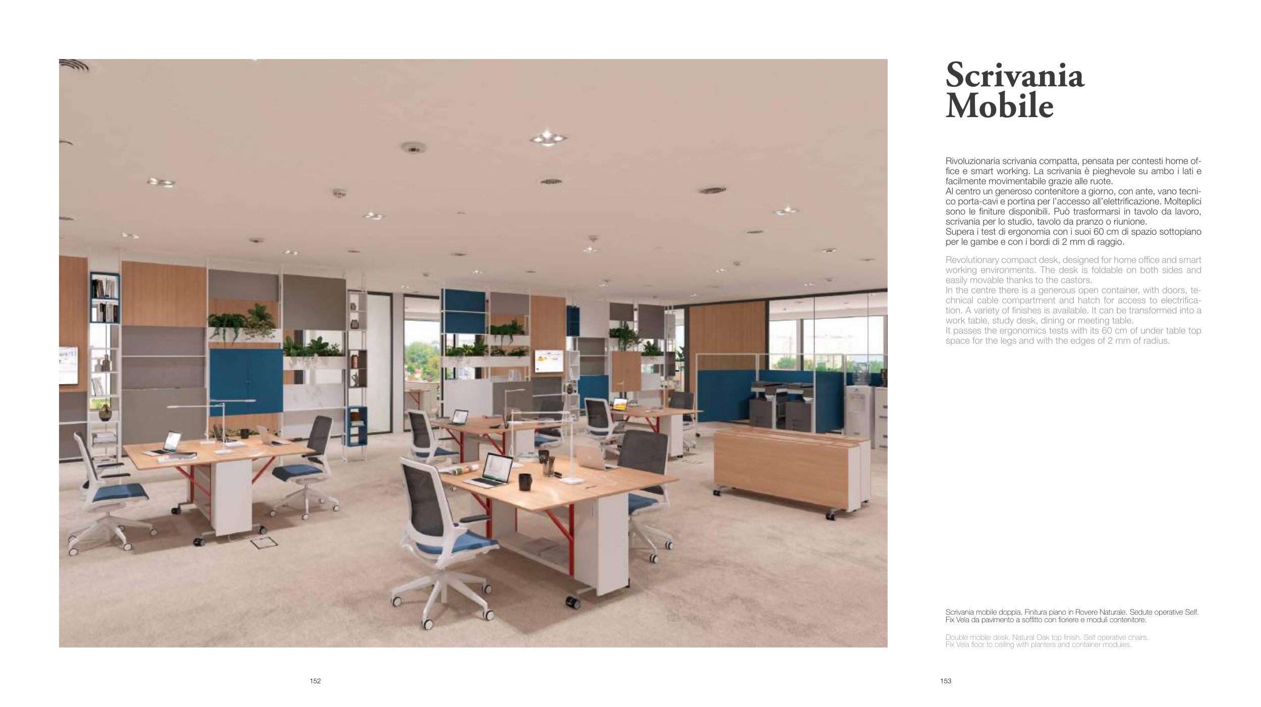 Scrivania mobile doppia. Finitura piano in Rovere Naturale. Sedute operative Self.