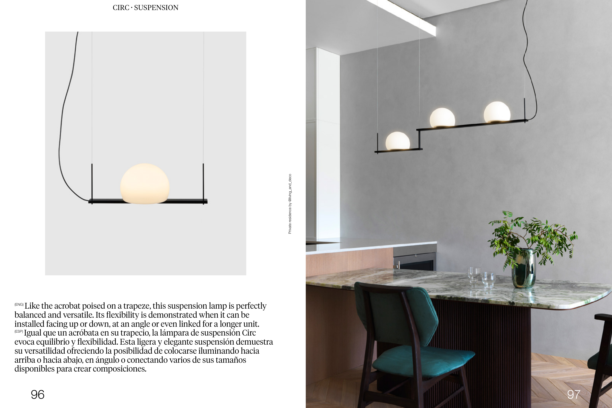 (ENG) Like the acrobat poised on a trapeze, this suspension lamp is perfectly