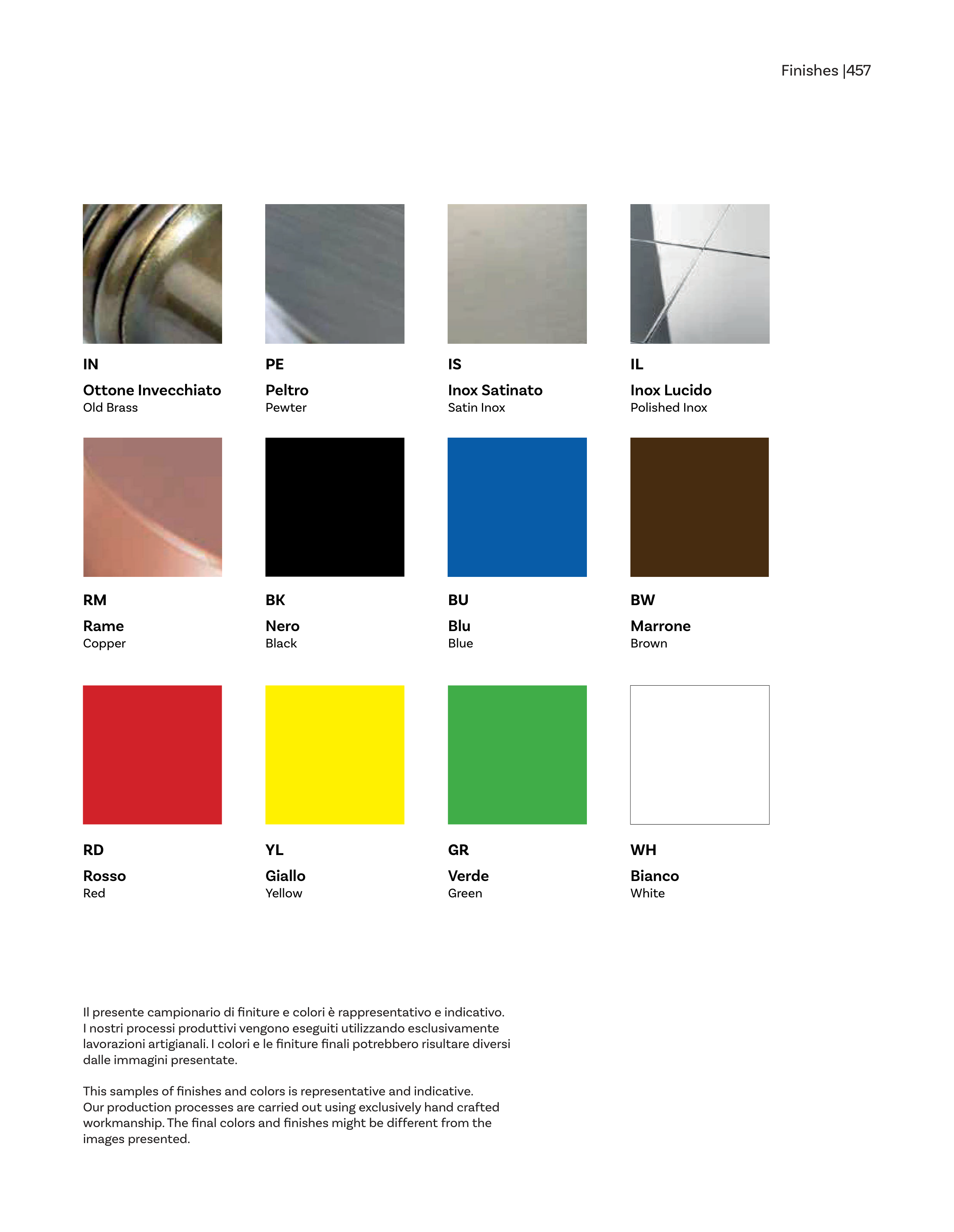 Il presente campionario di finiture e colori è rappresentativo e indicativo.