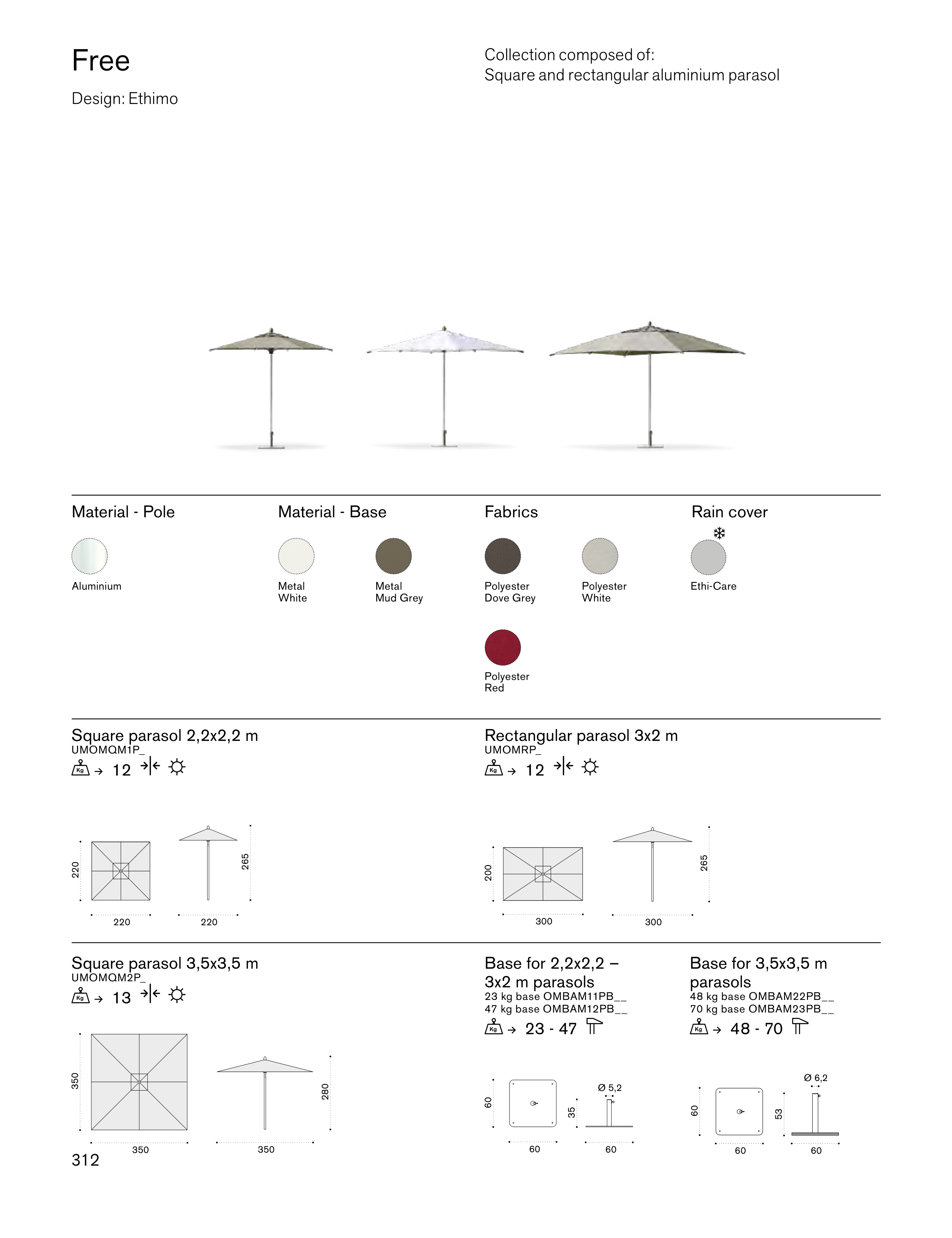 Square and rectangular aluminium parasol