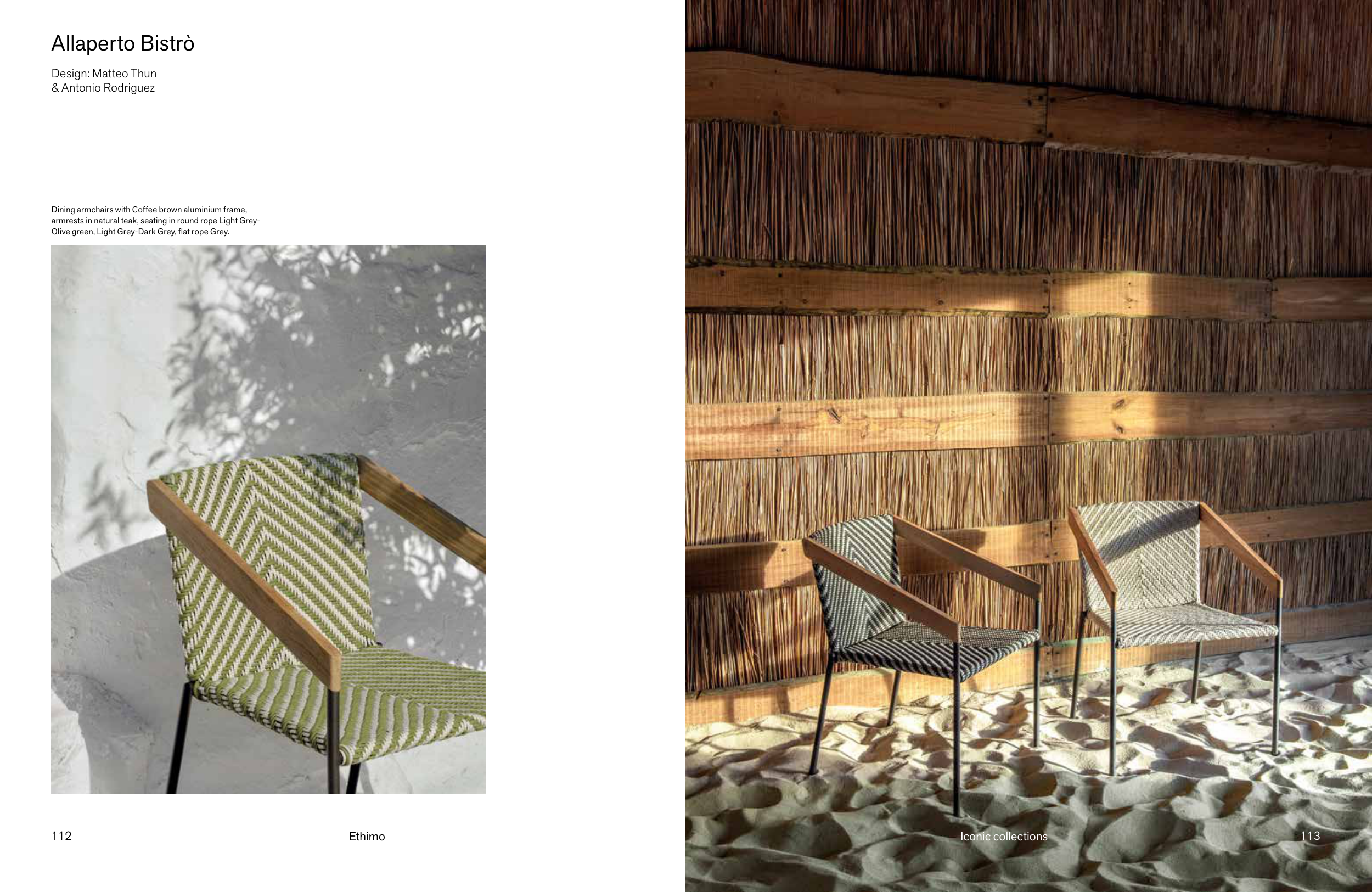 armrests in natural teak, seating in round rope Light Grey-