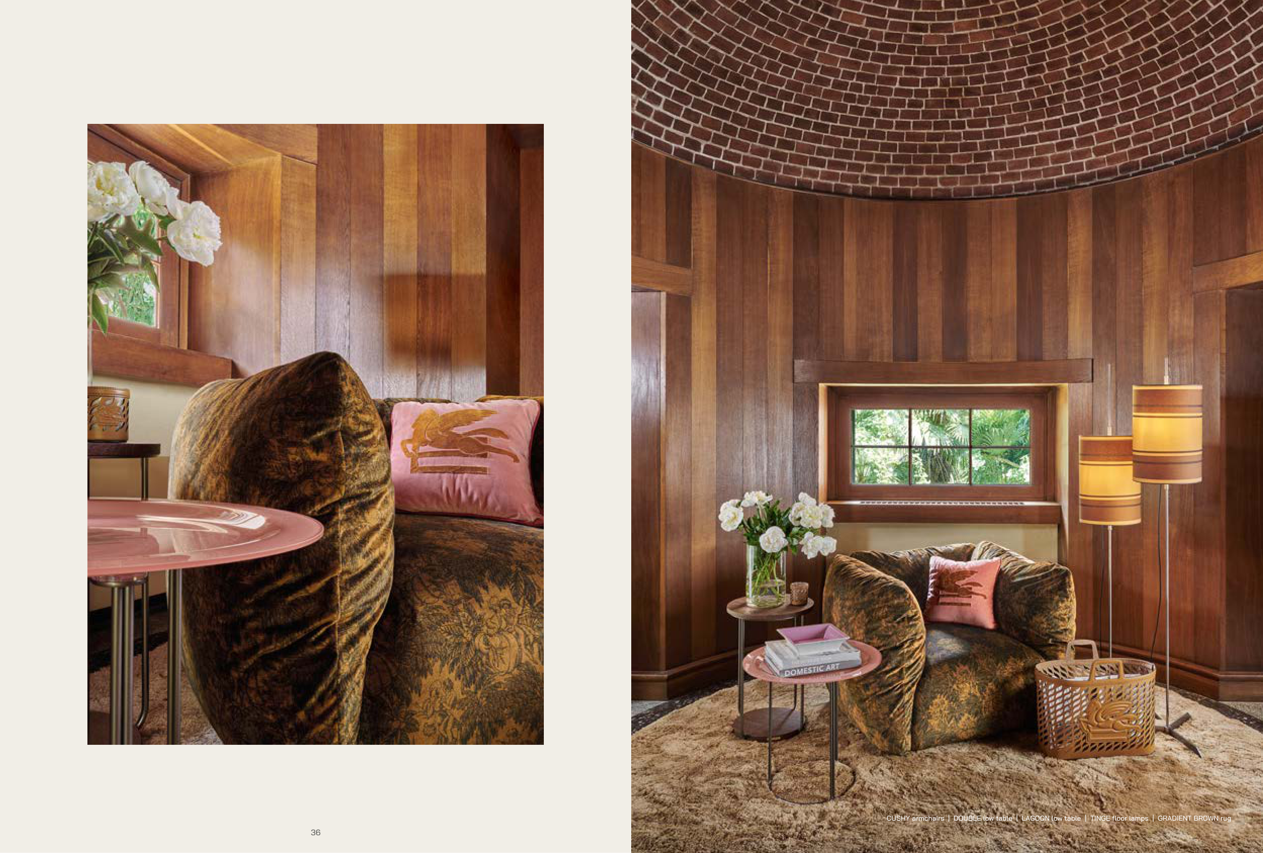 CUSHY armchairs | DOUBLE low table | LAGOON low table | TINGE floor lamps | GRADIENT BROWN rug