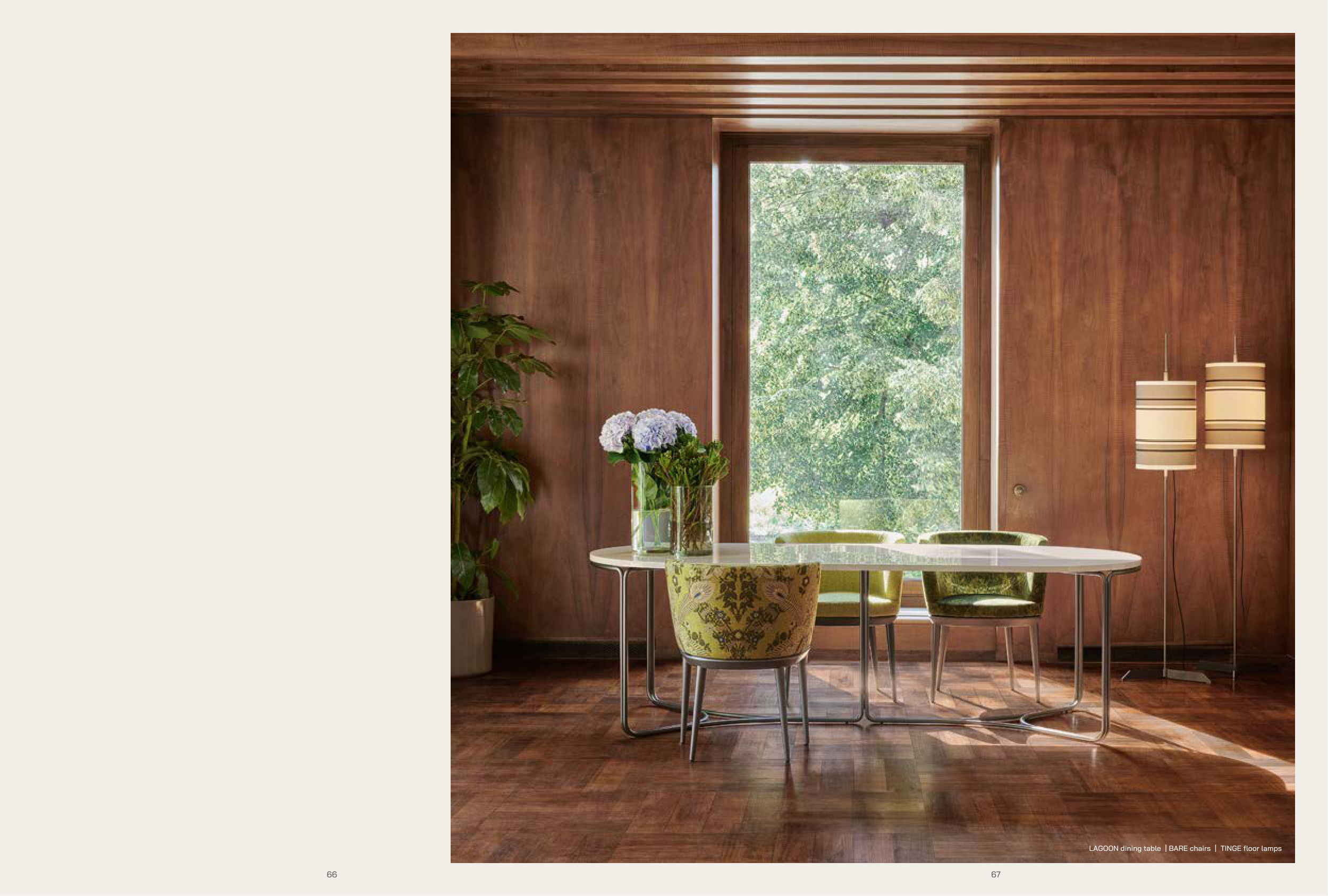 LAGOON dining table | BARE chairs | TINGE floor lamps