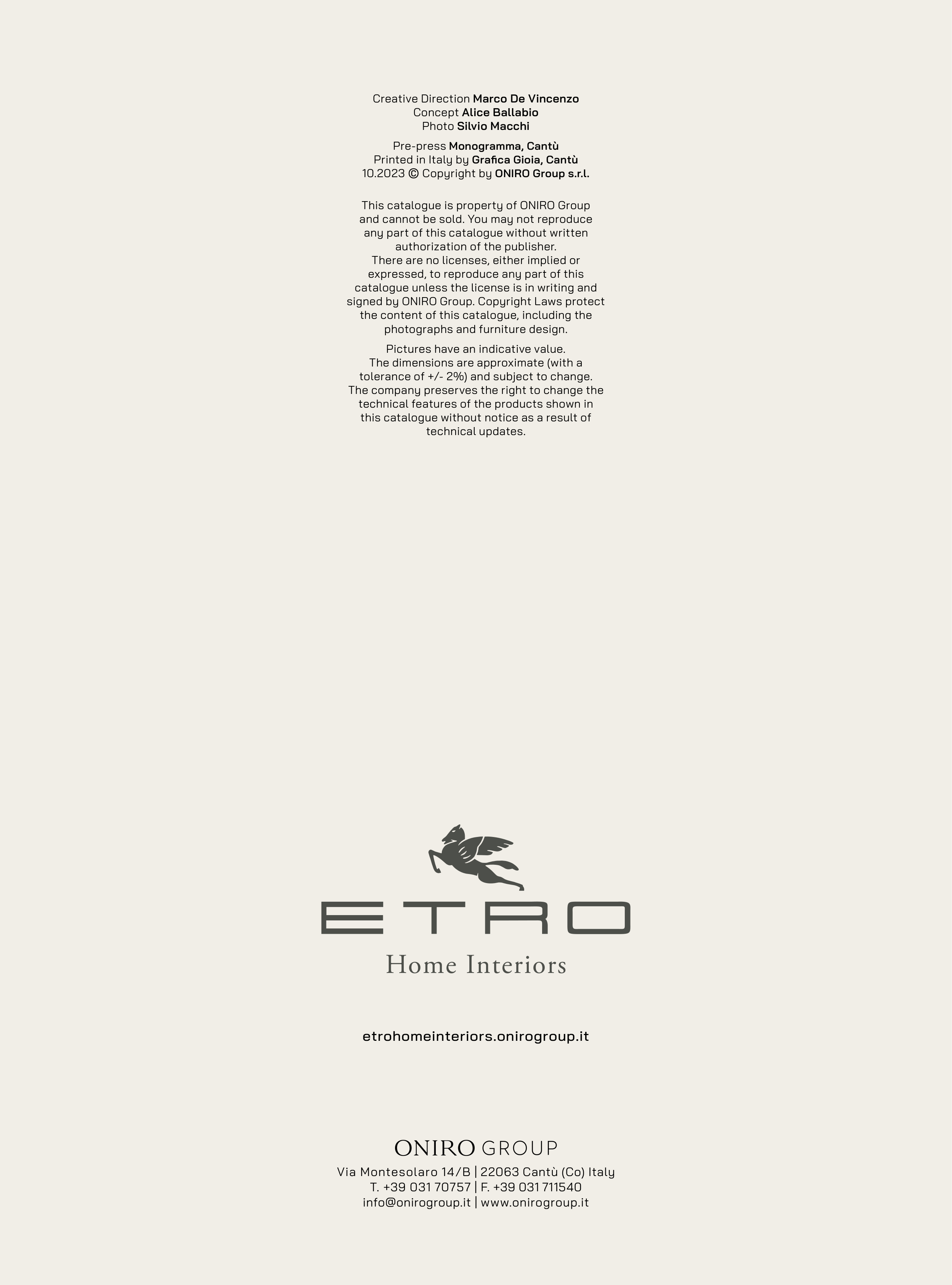 This catalogue is property of ONIRO Group