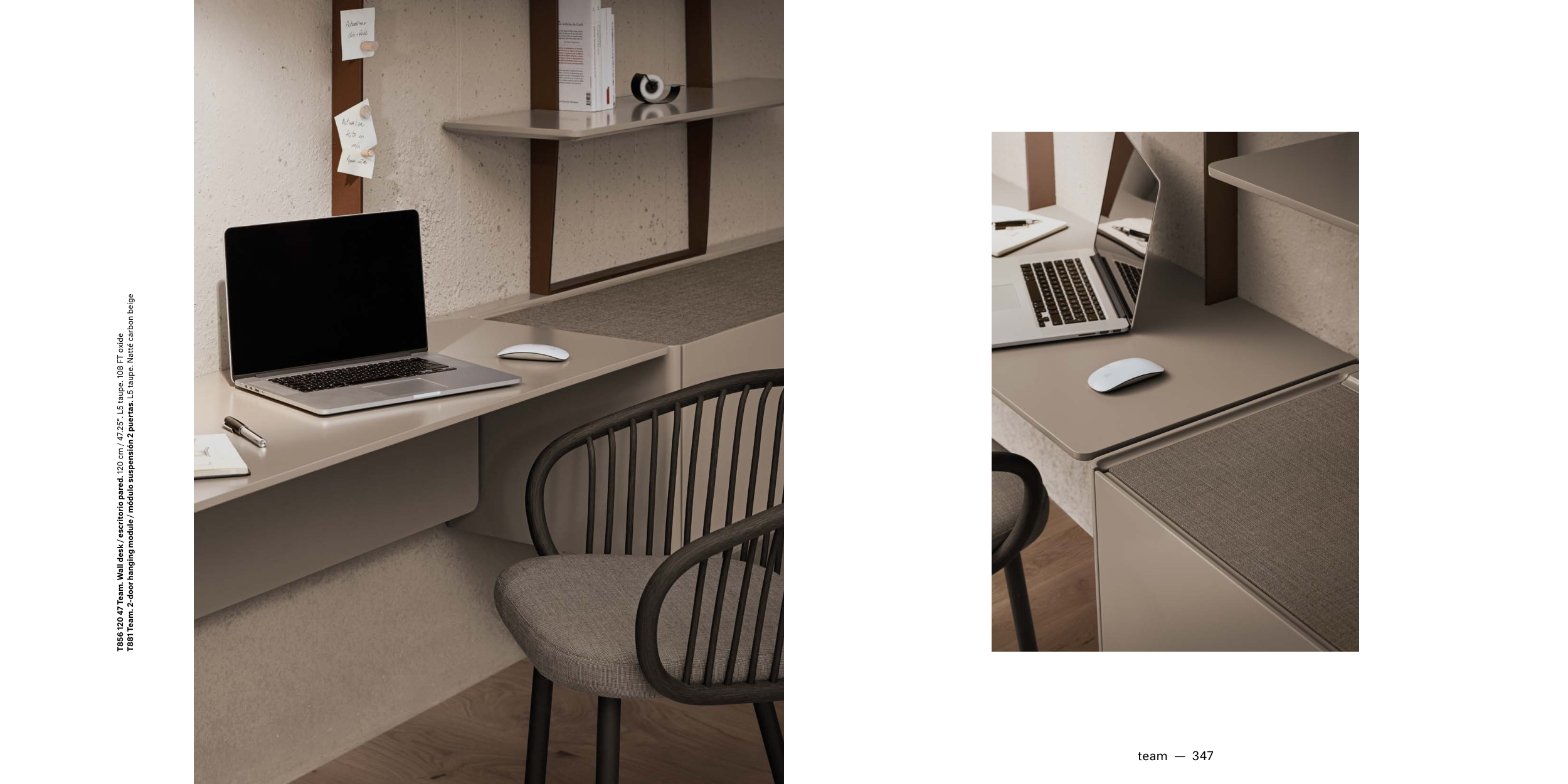 T856 120 47 Team. Wall desk / escritorio pared. 120 cm / 47.25”. L5 taupe. 108 FT oxide