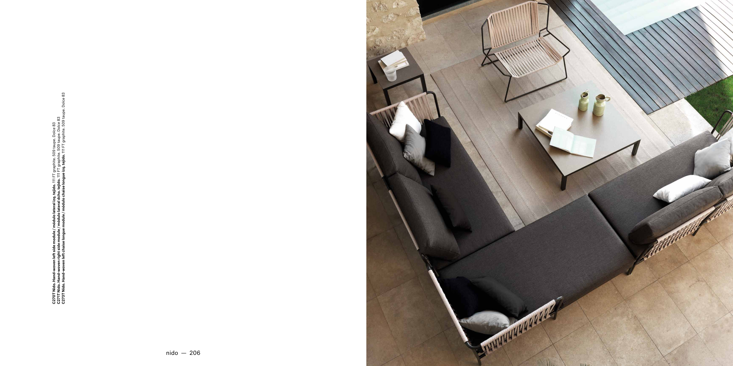 C273T Nido. Hand-woven left chaise longue module / módulo chaise longue izq. tejido. 111 FT graphite. 509 taupe. Dolce 83