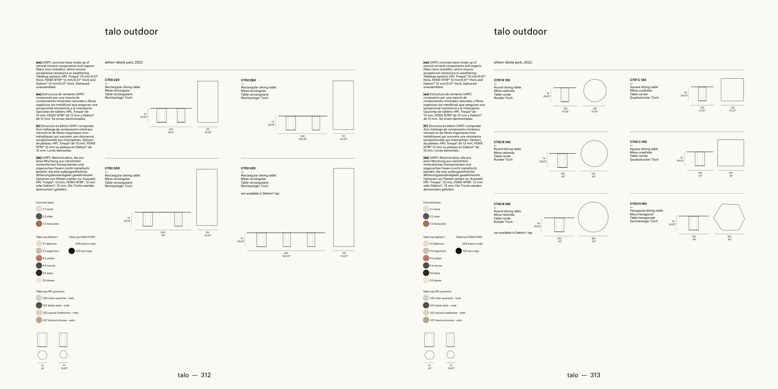 oder Dekton®, 12 mm. Die Tische werden