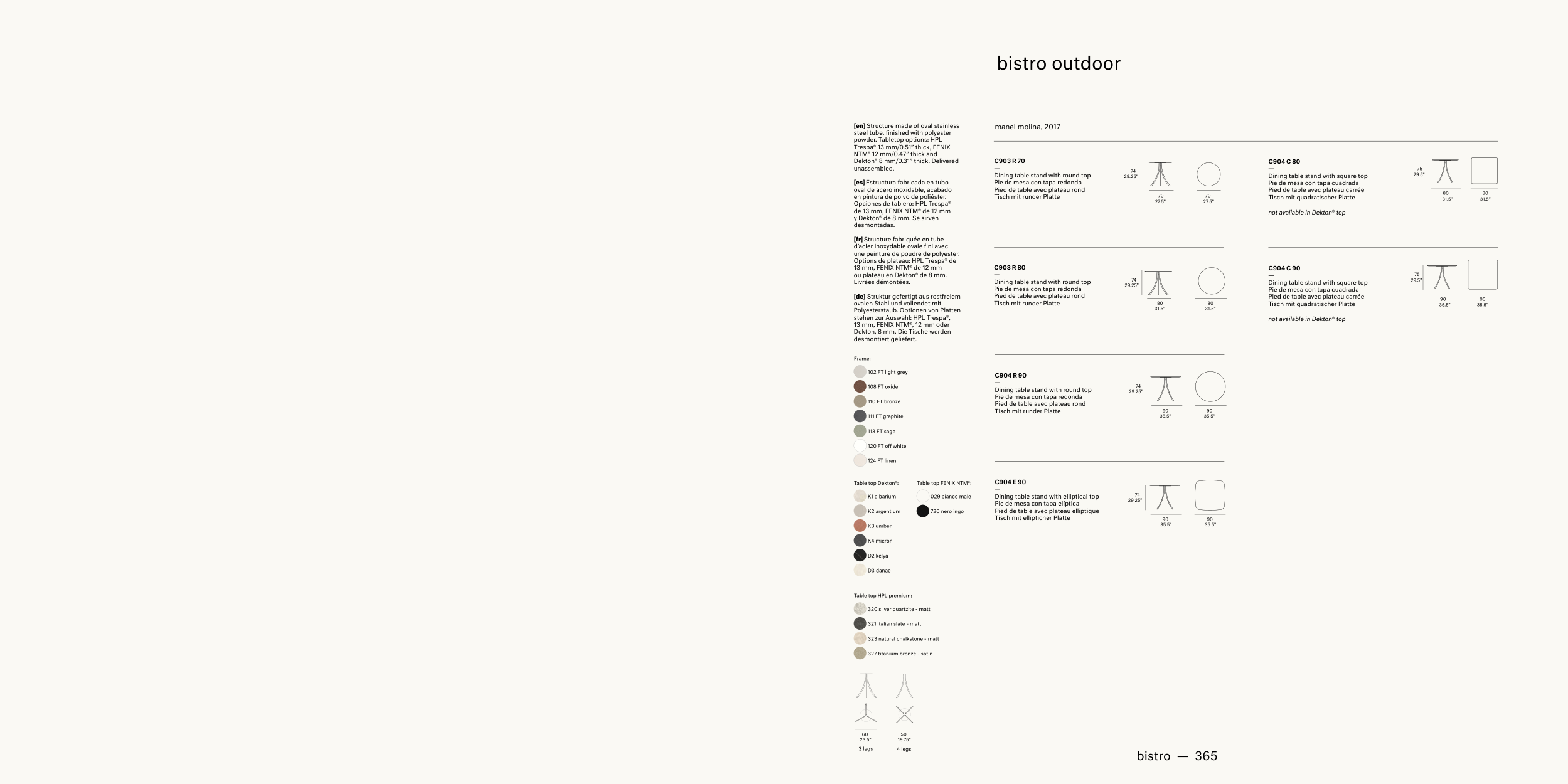 powder. Tabletop options: HPL