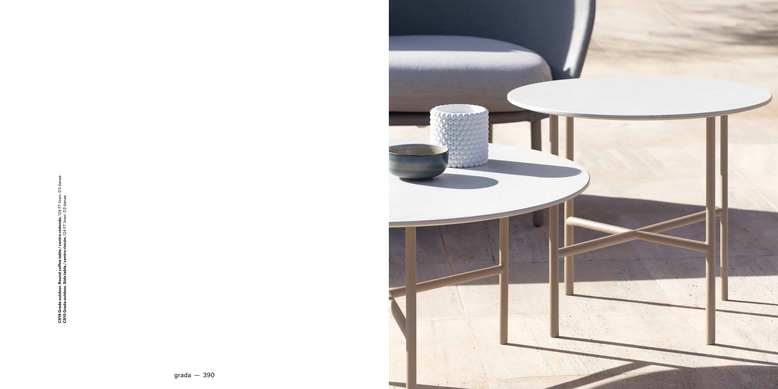 C919 Grada outdoor. Round coffee table / centro redondo. 124 FT linen. D3 danae