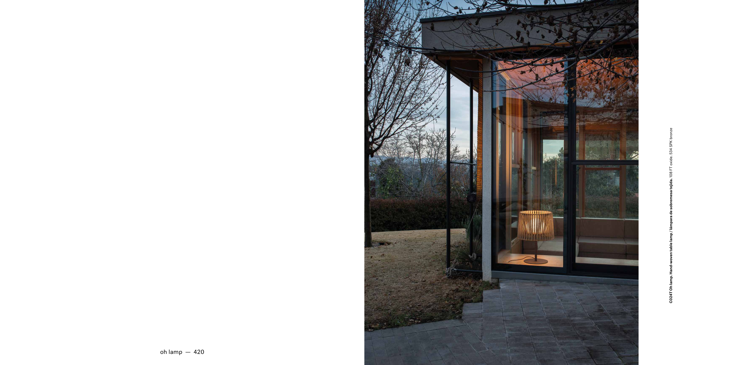 C024T Oh lamp. Hand-woven table lamp / lámpara de sobremesa tejida. 108 FT oxide. 534 SPK bronze