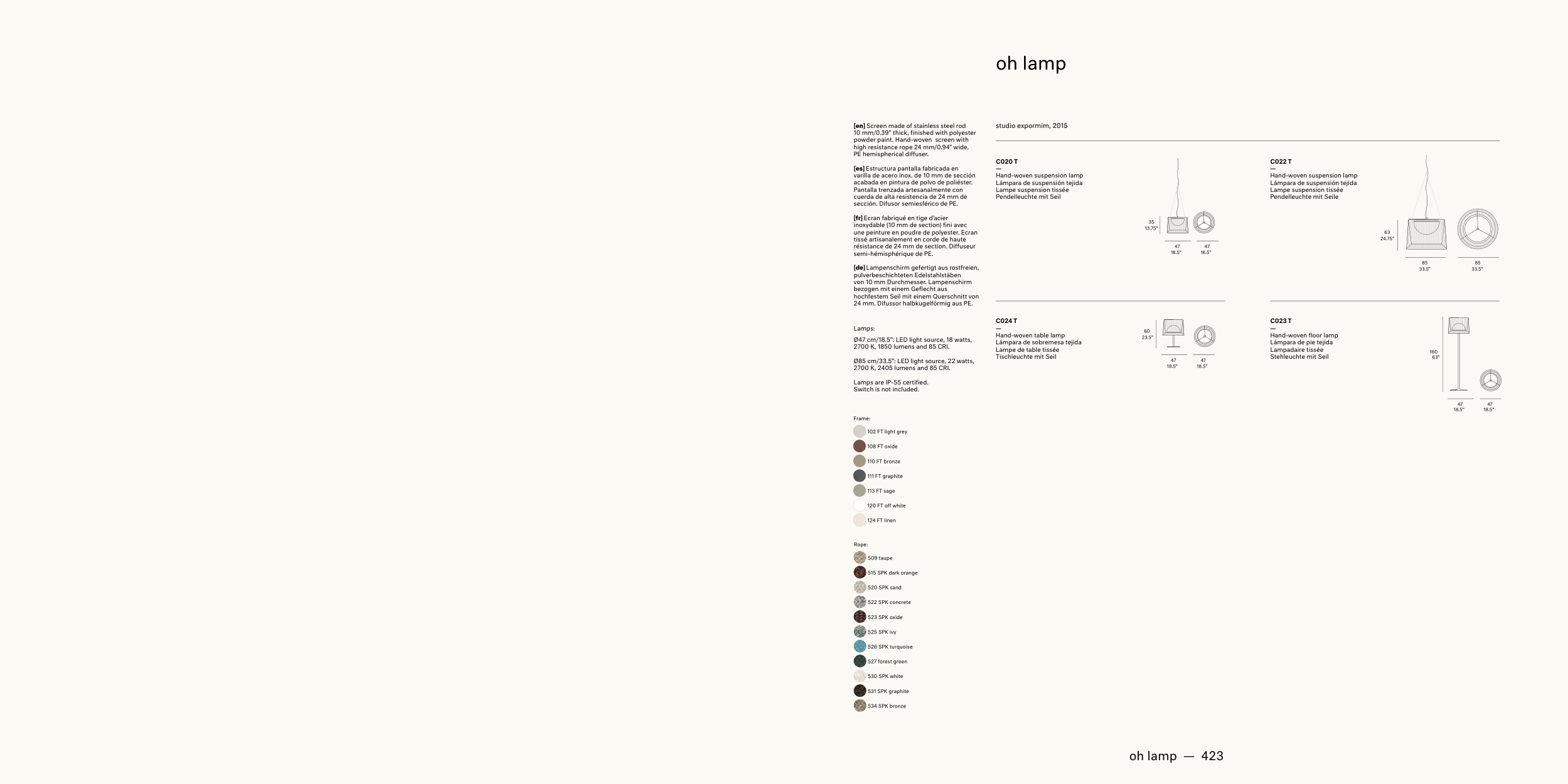 Ø85 cm/33.5”: LED light source, 22 watts,