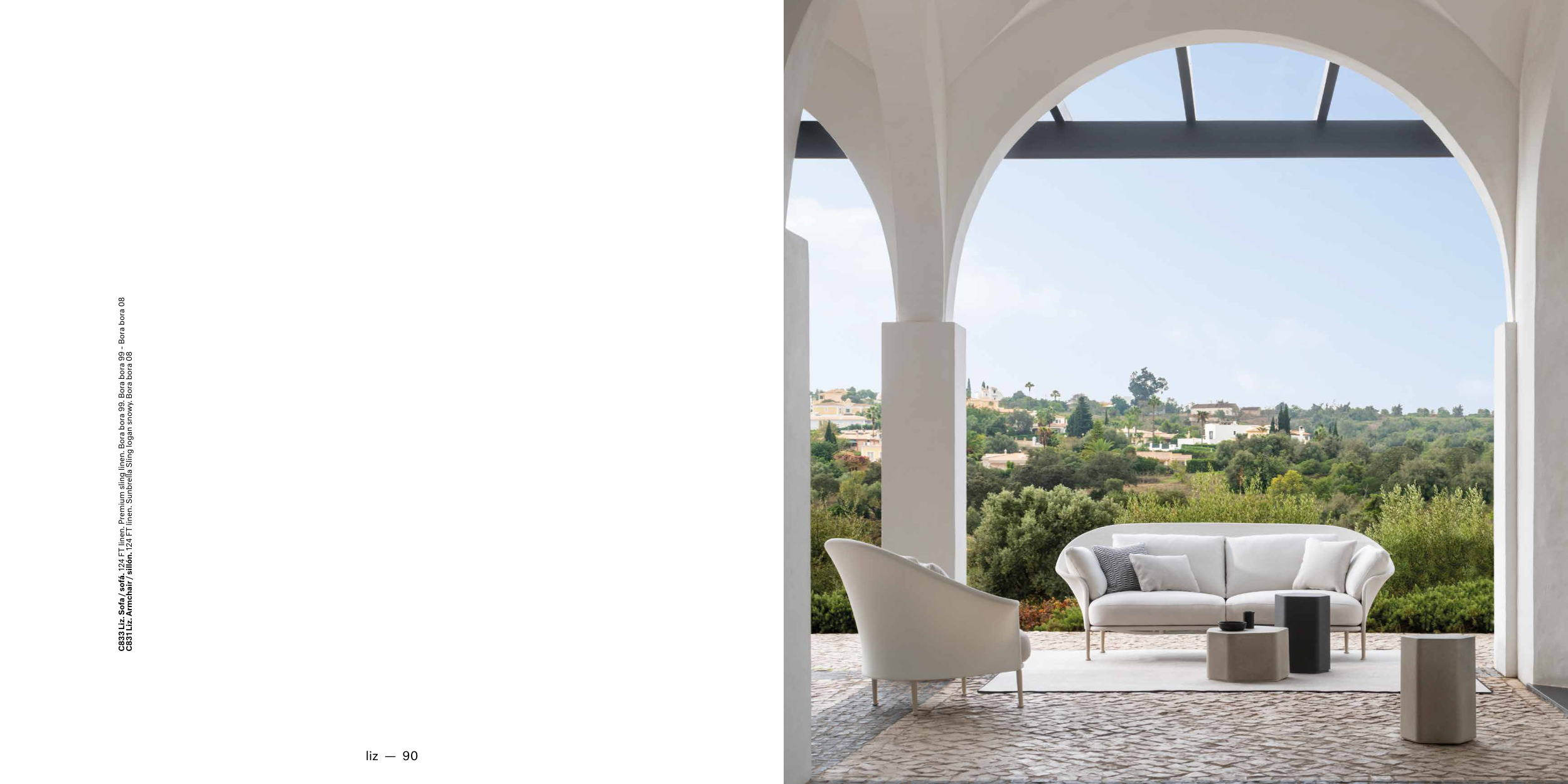 C831 Liz. Armchair / sillón. 124 FT linen. Sunbrella Sling logan snowy. Bora bora 08