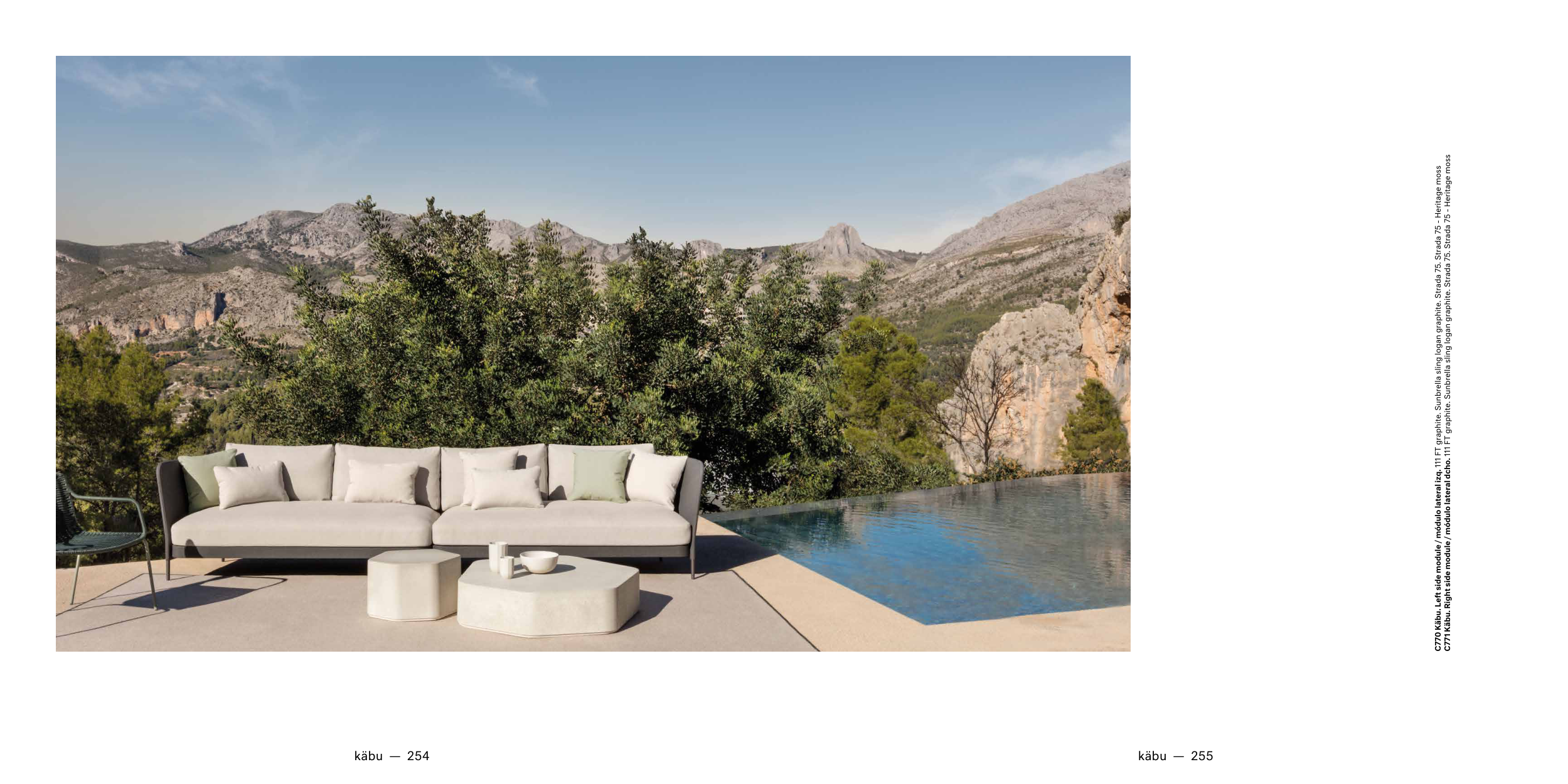 C771 Käbu. Right side module / módulo lateral dcho. 111 FT graphite. Sunbrella sling logan graphite. Strada 75. Strada 75 - Heritage moss