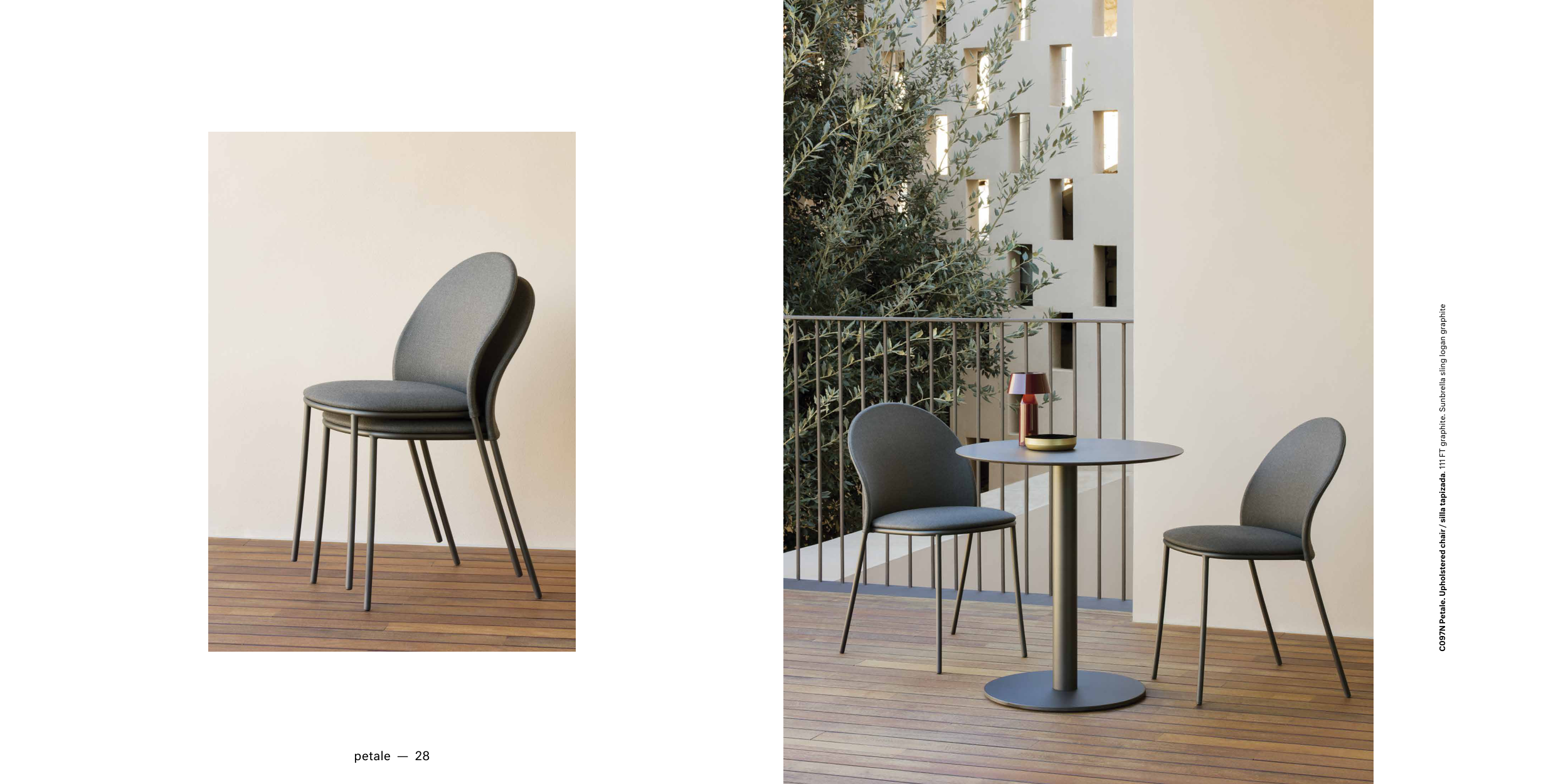 C097N Petale. Upholstered chair / silla tapizada. 111 FT graphite. Sunbrella sling logan graphite