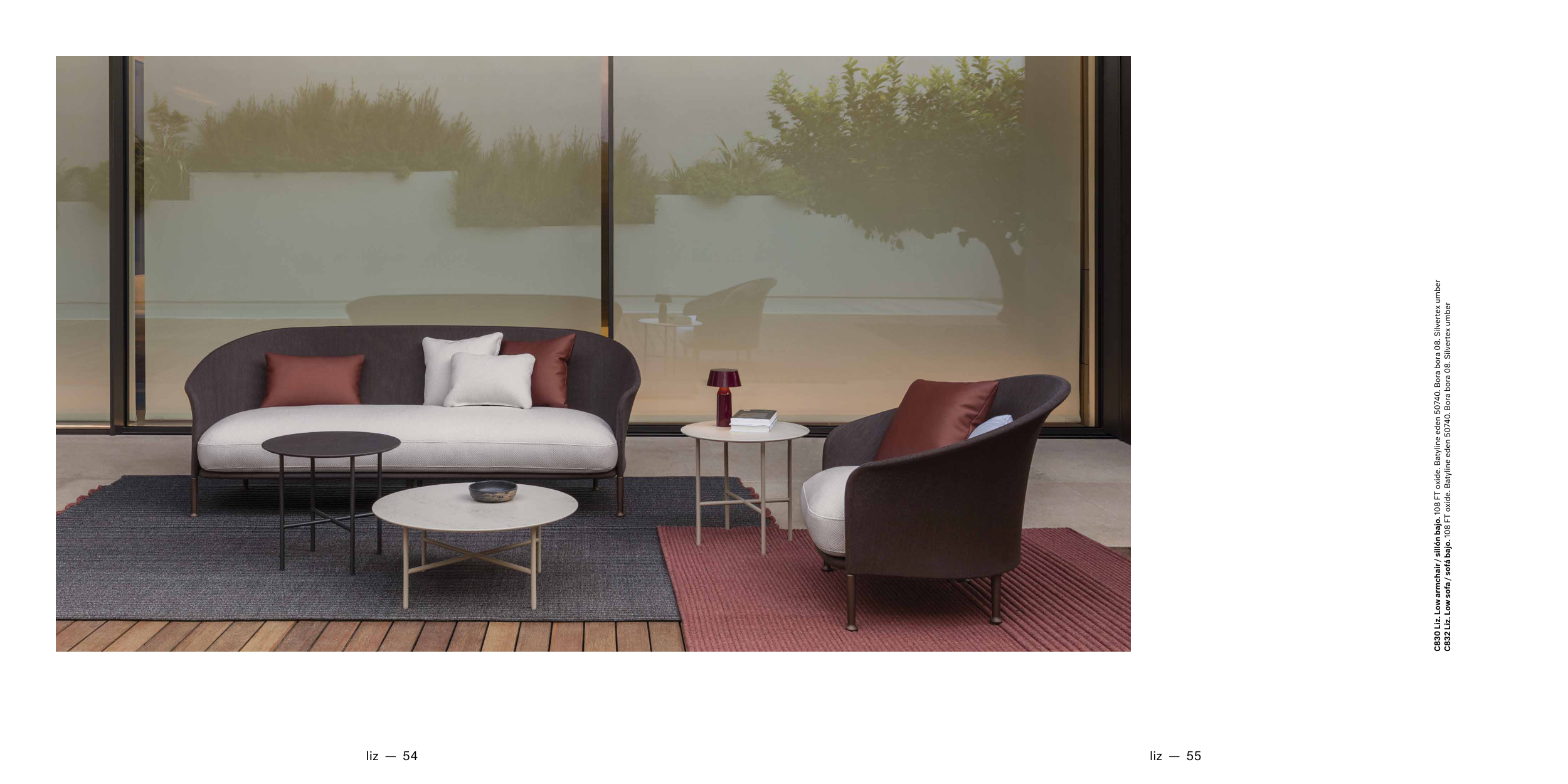 C832 Liz. Low sofa / sofá bajo. 108 FT oxide. Batyline eden 50740. Bora bora 08. Silvertex umber