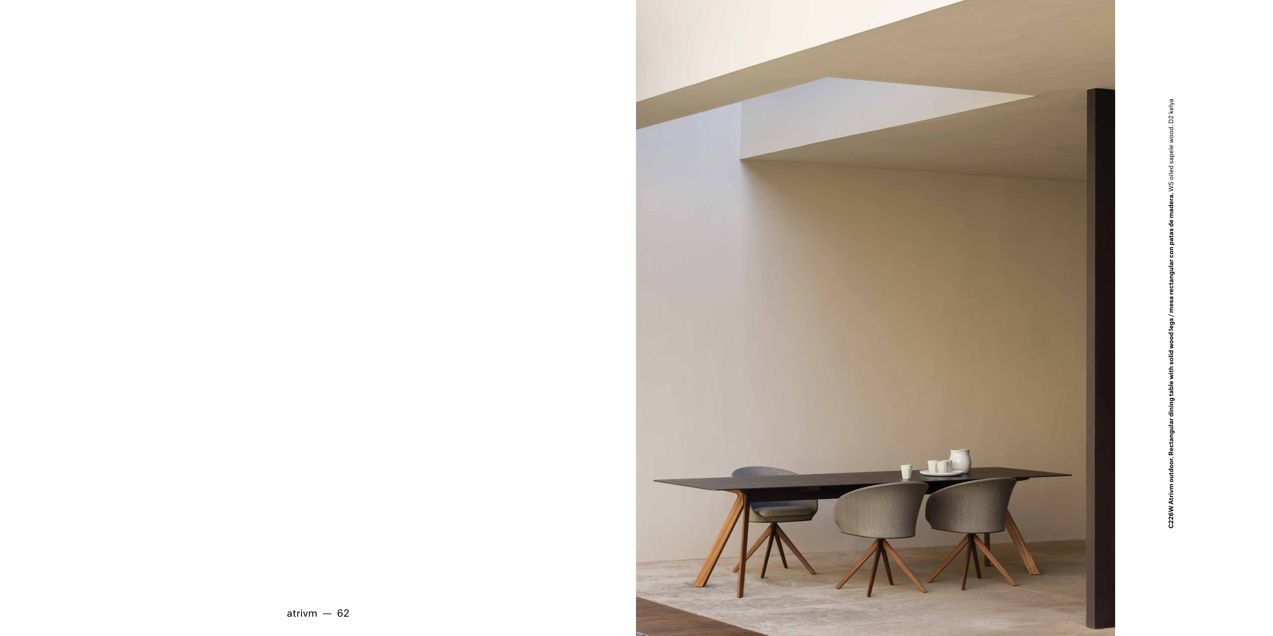 C226W Atrivm outdoor. Rectangular dining table with solid wood legs / mesa rectangular con patas de madera. WS oiled sapele wood. D2 kelya