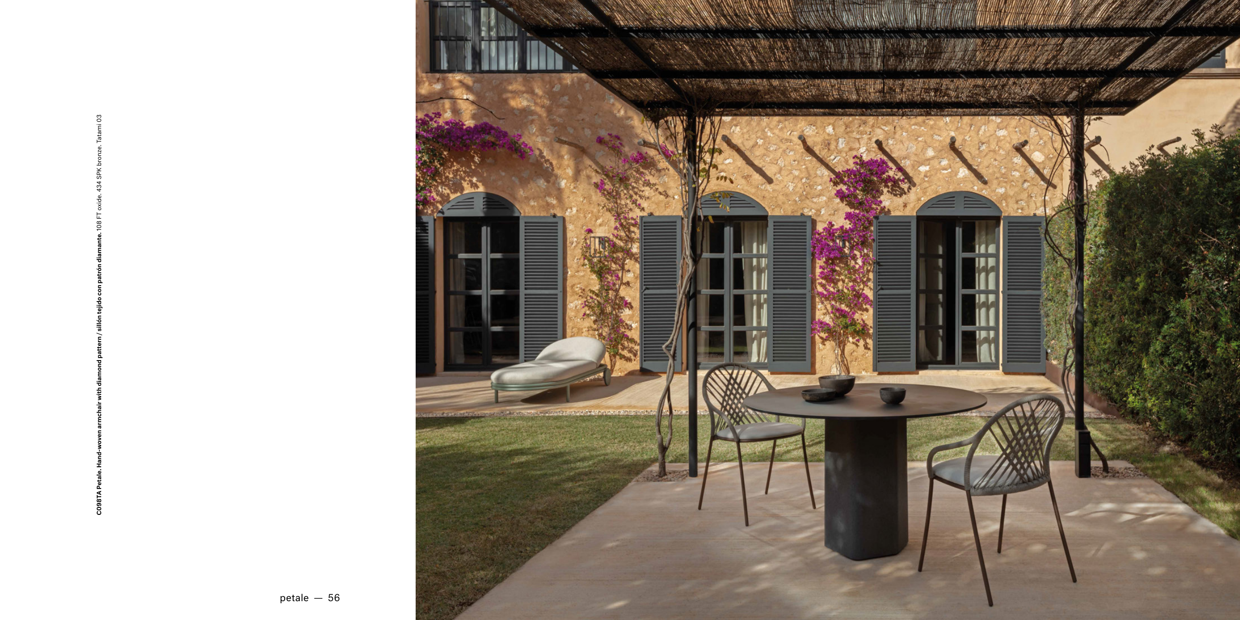 C098TA Petale. Hand-woven armchair with diamond pattern / sillón tejido con patrón diamante. 108 FT oxide. 434 SPK bronze. Tatami 03