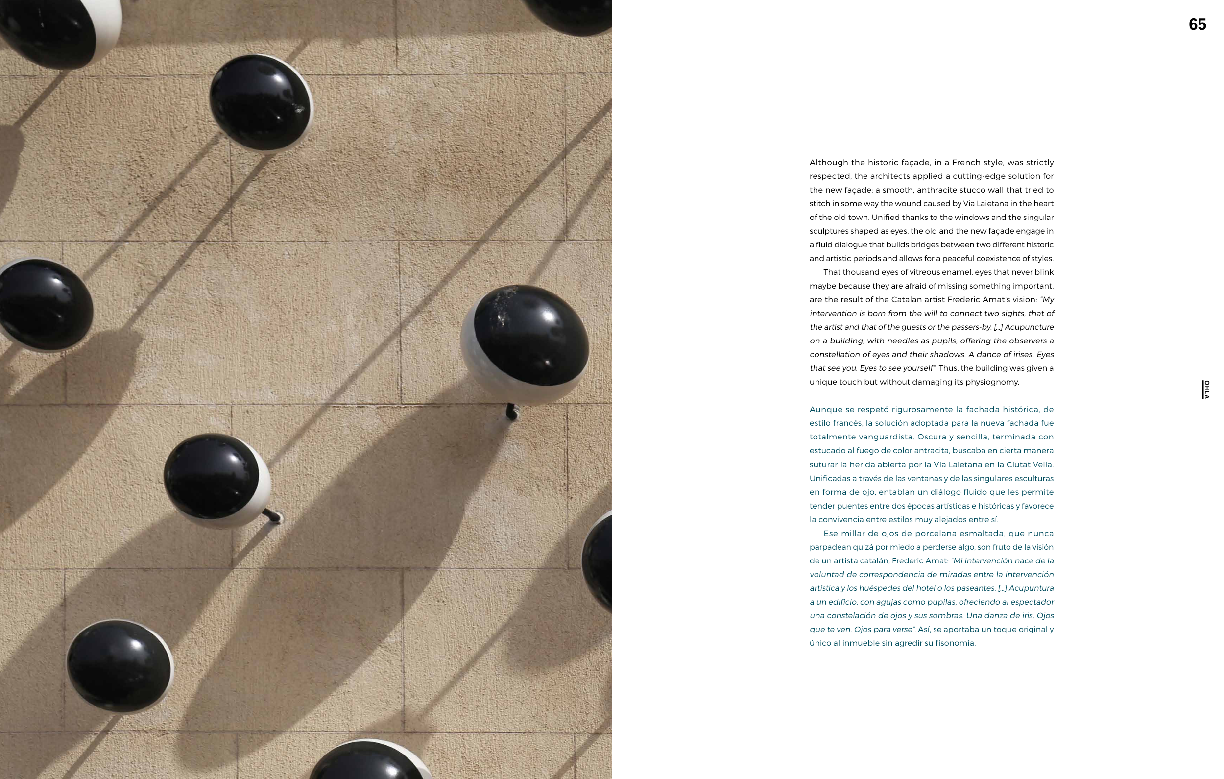 sculptures shaped as eyes, the old and the new façade engage in