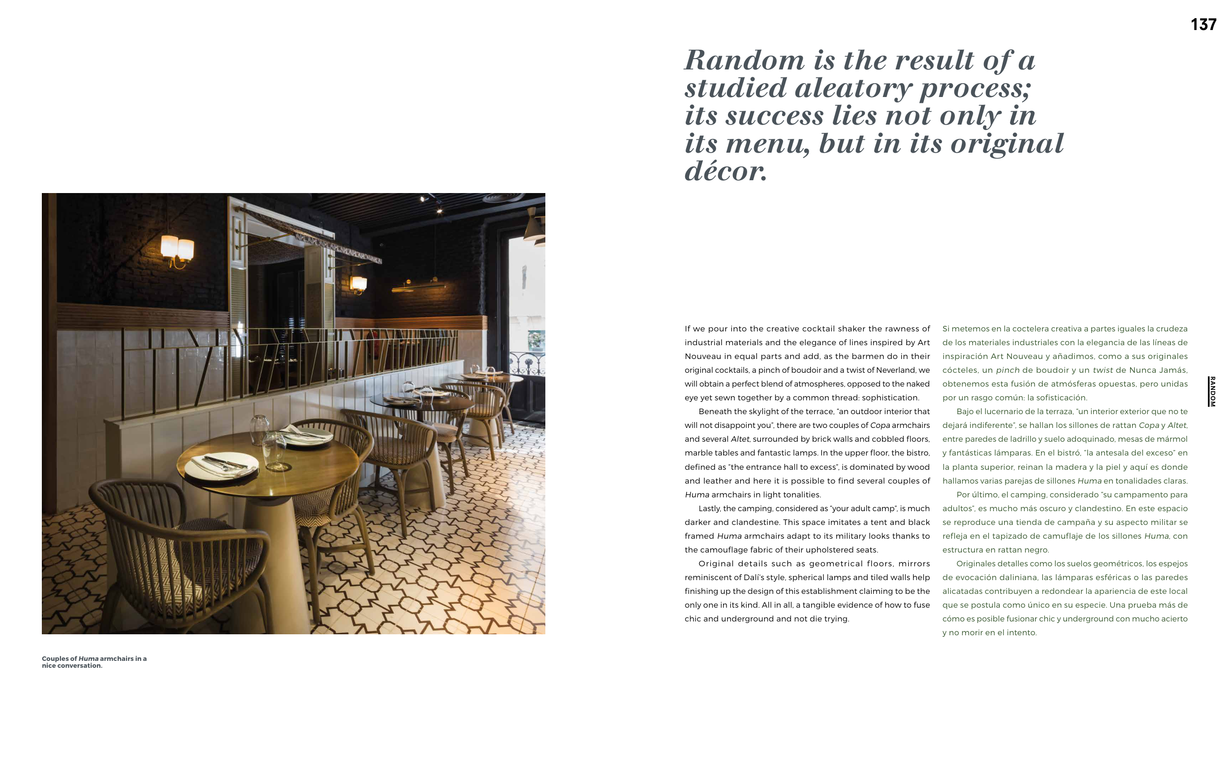 refleja en el tapizado de camuflaje de los sillones Huma, con