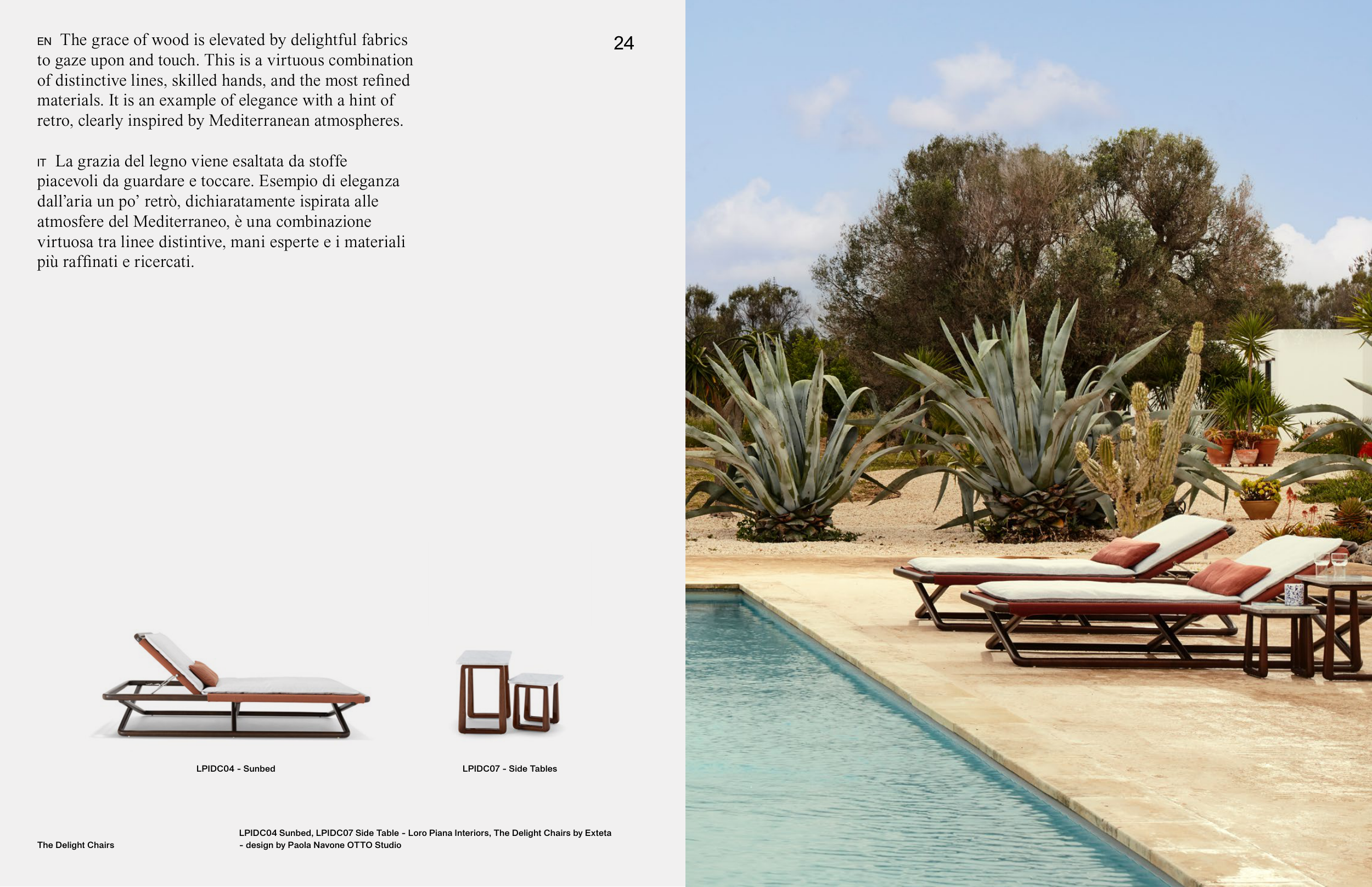 LPIDC04 Sunbed, LPIDC07 Side Table - Loro Piana Interiors, The Delight Chairs by Exteta