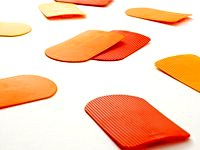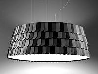 The three tone coloured scales, made of semi-rigid rubbery material, cover two frames different in shape. The lower part is closed by a polymethylmethacrylate diffuser disk.