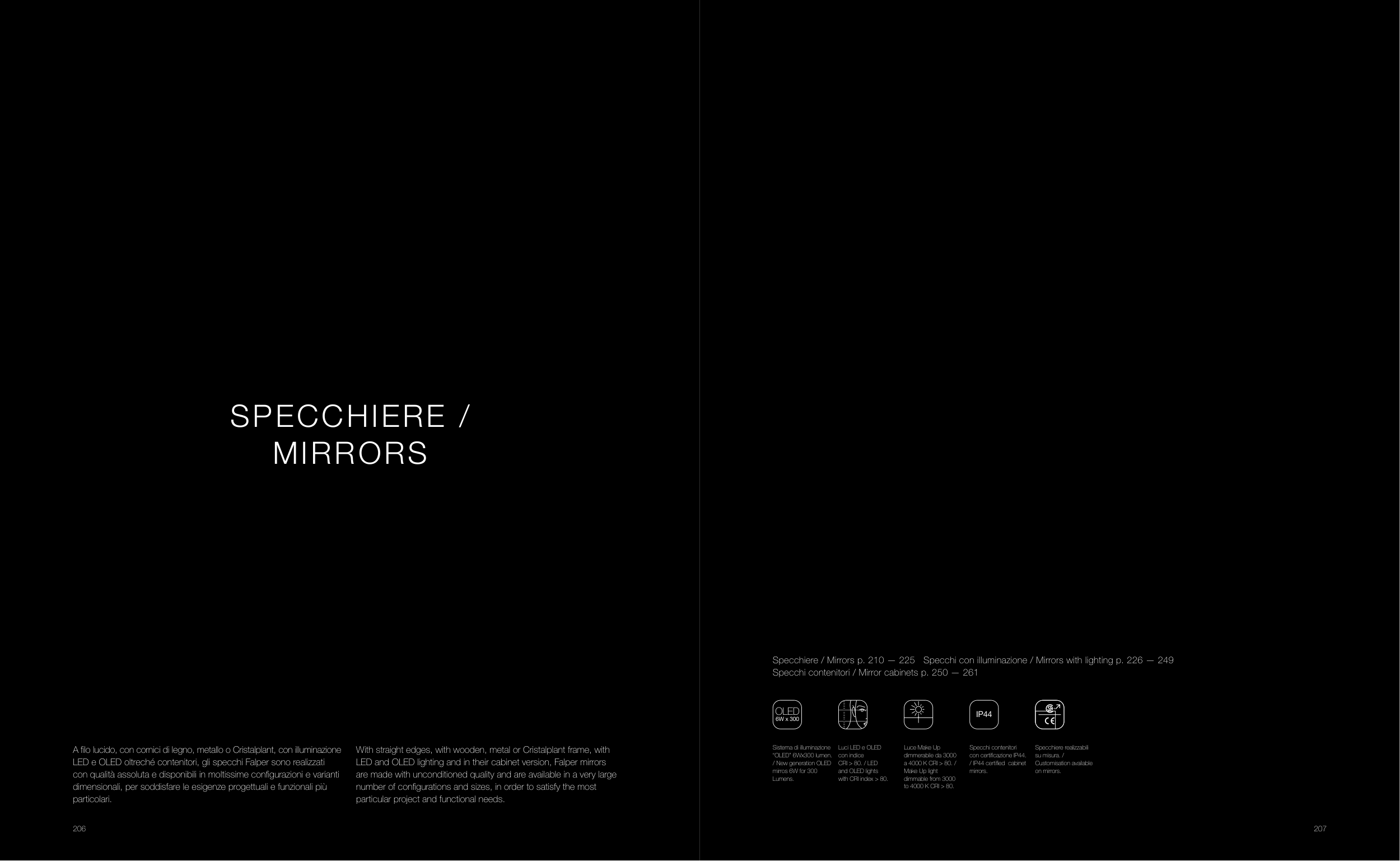 �pecchiere / �irrors p. 210 � 225 �pecchi con illuminazione / �irrors with lighting p. 226 � 249