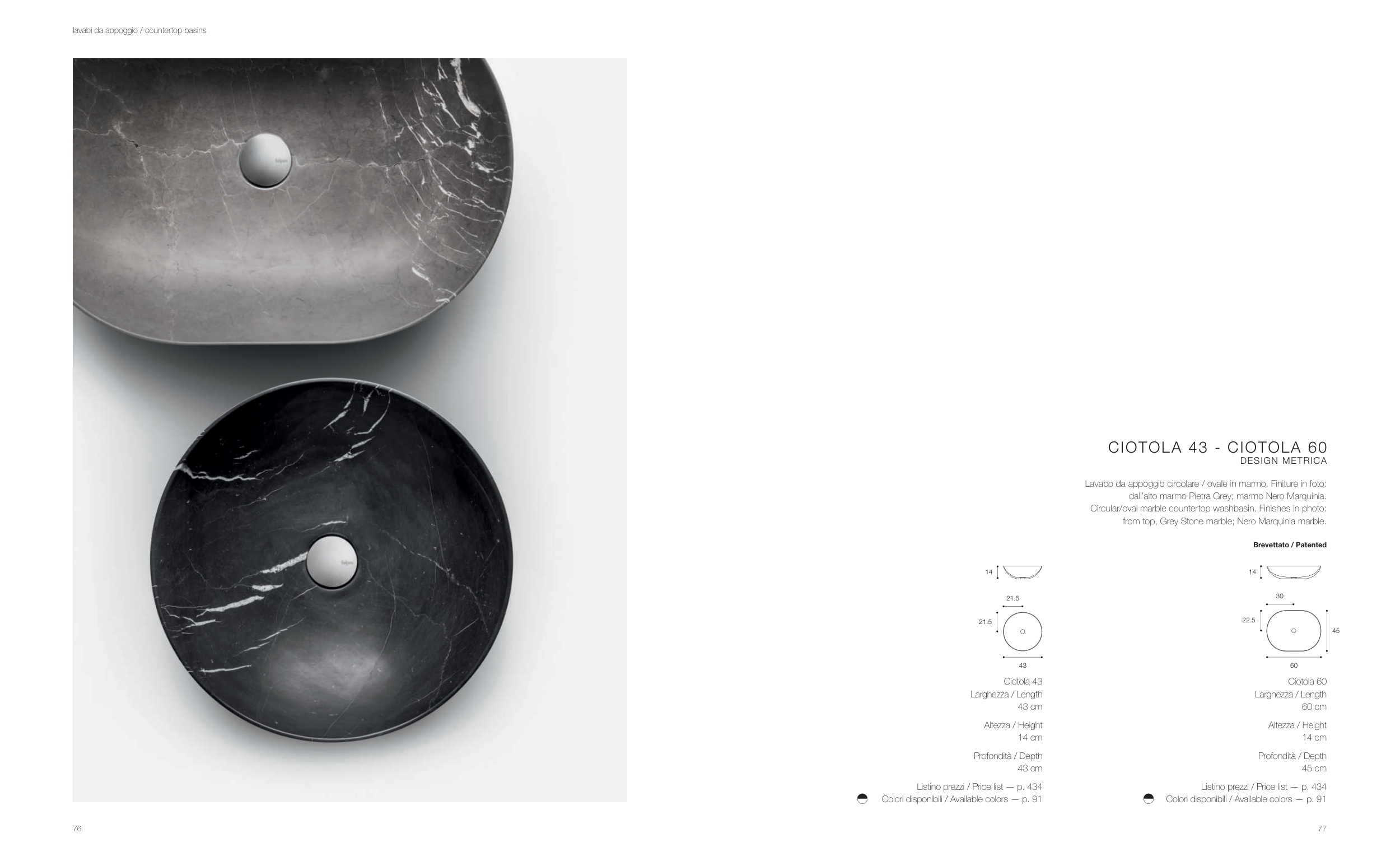 Colori disponibili / Available colors — p. 91