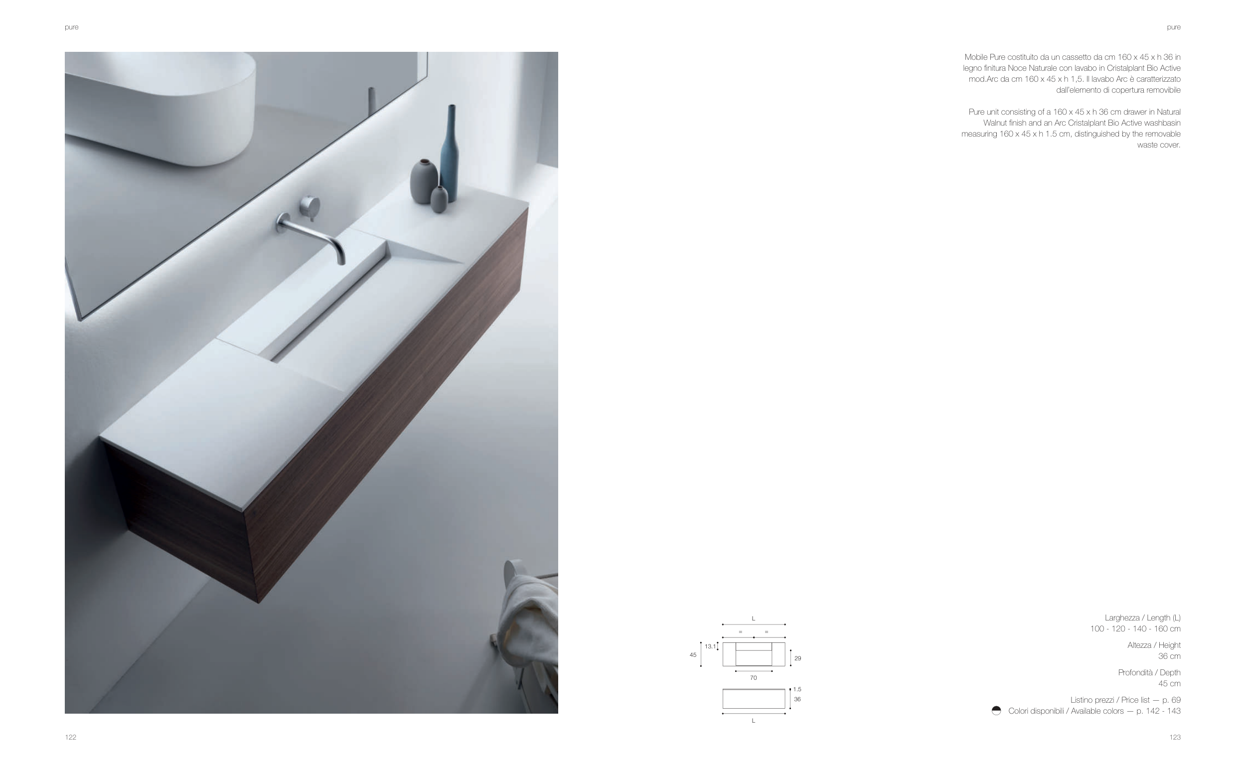 mod.Arc da cm 160 x 45 x h 1,5. Il lavabo Arc è caratterizzato