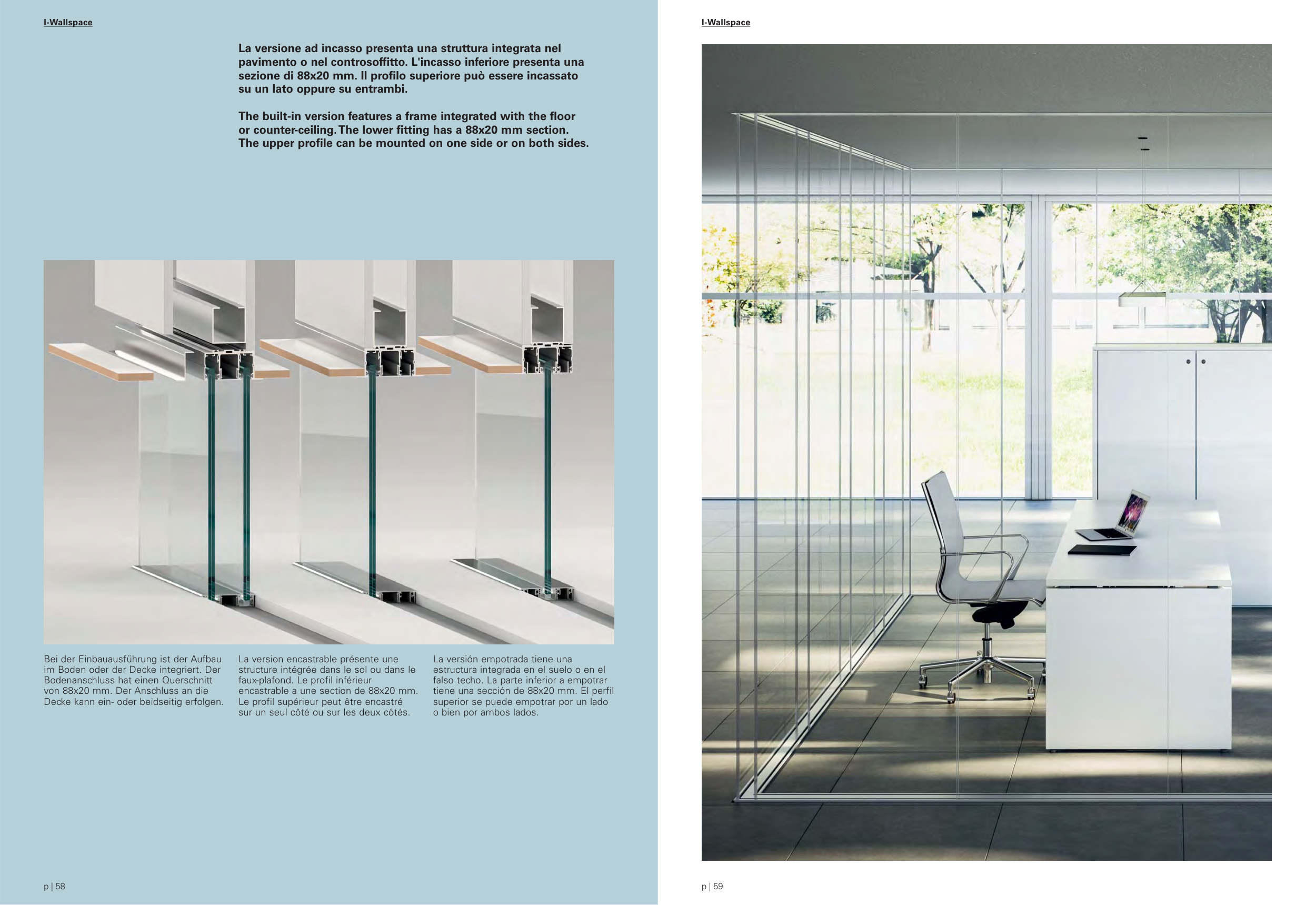 or counter-ceiling. The lower fitting has a 88x20 mm section.