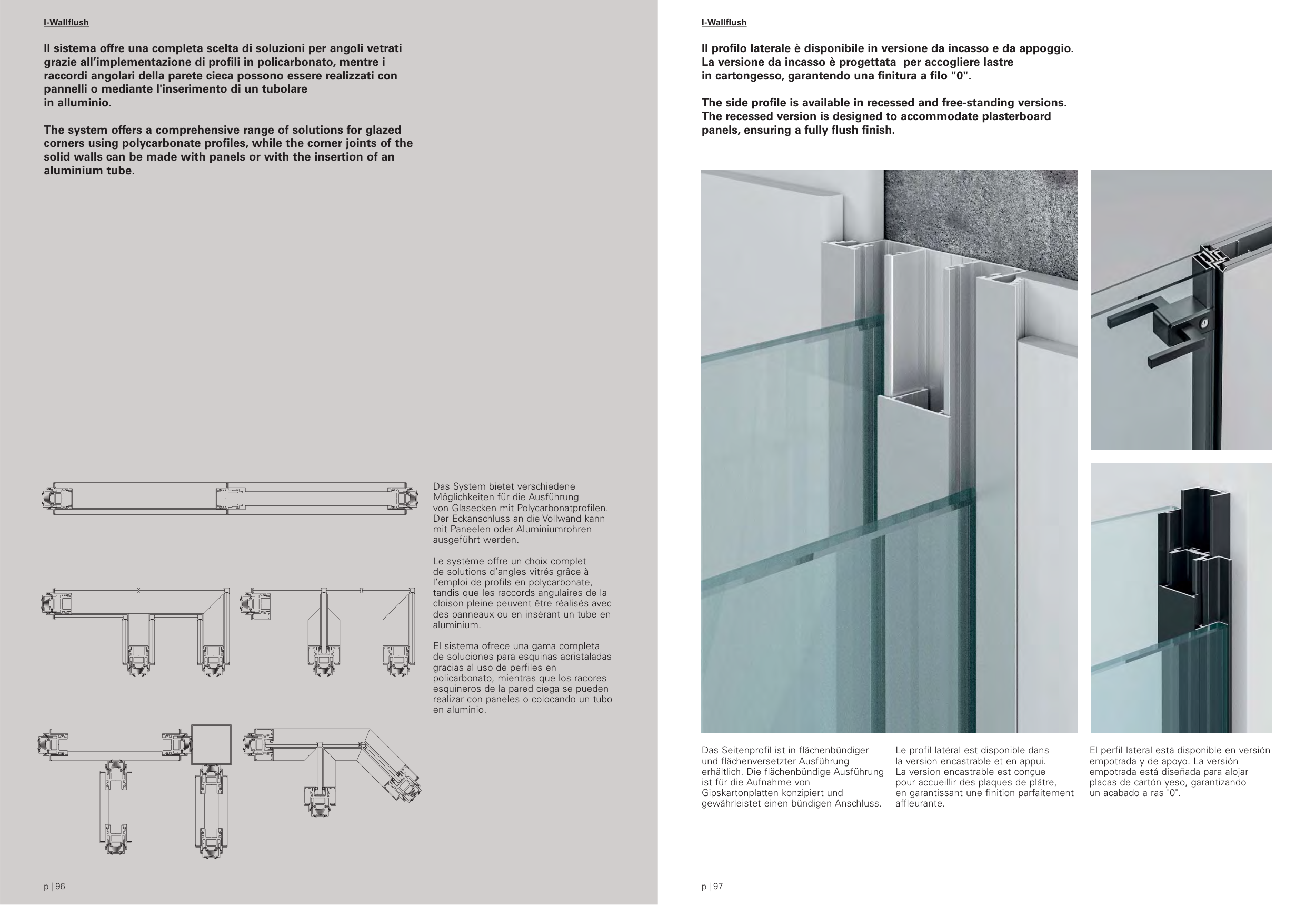 Il sistema offre una completa scelta di soluzioni per angoli vetrati