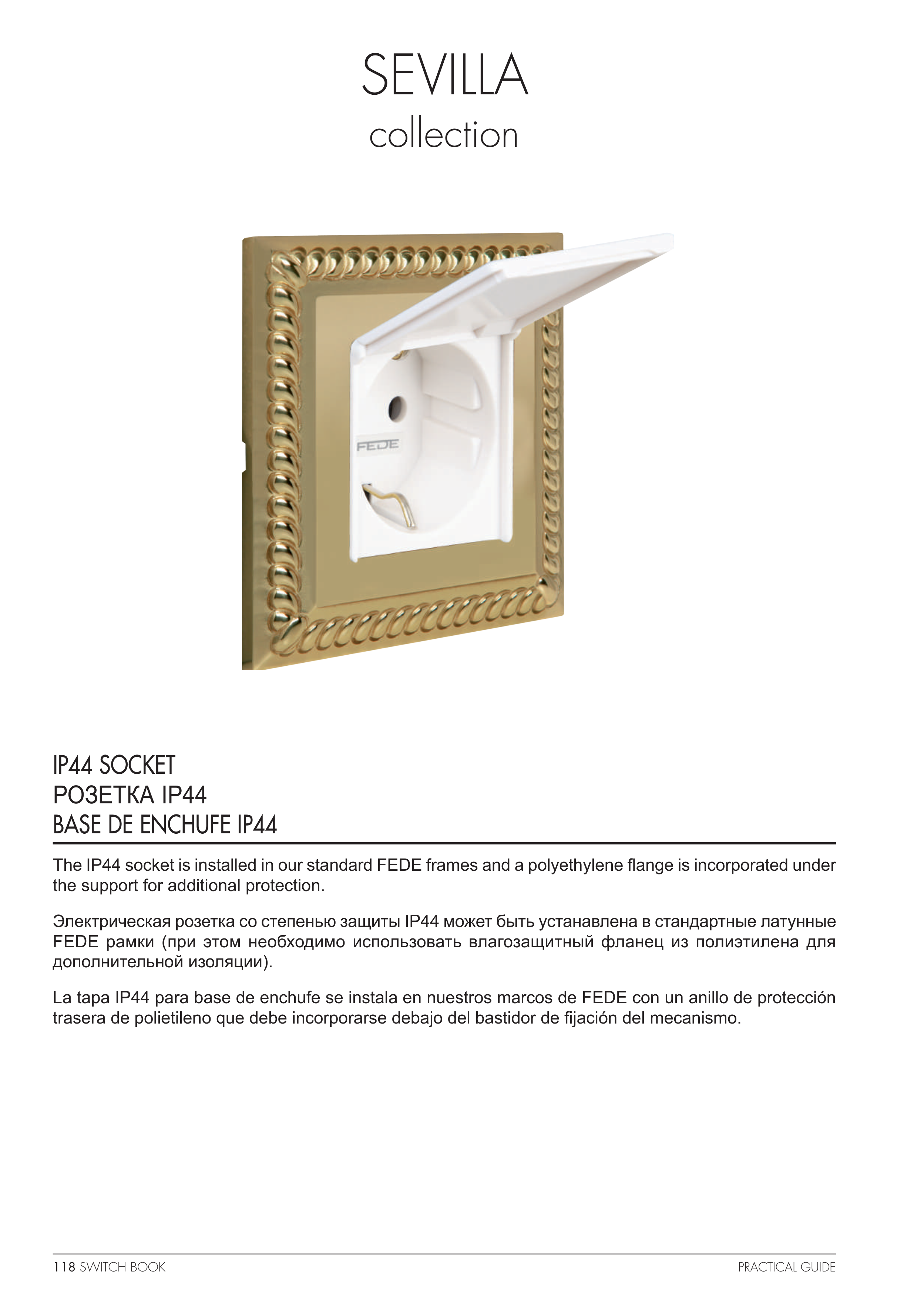 La tapa IP44 para base de enchufe se instala en nuestros marcos de FEDE con un anillo de protección