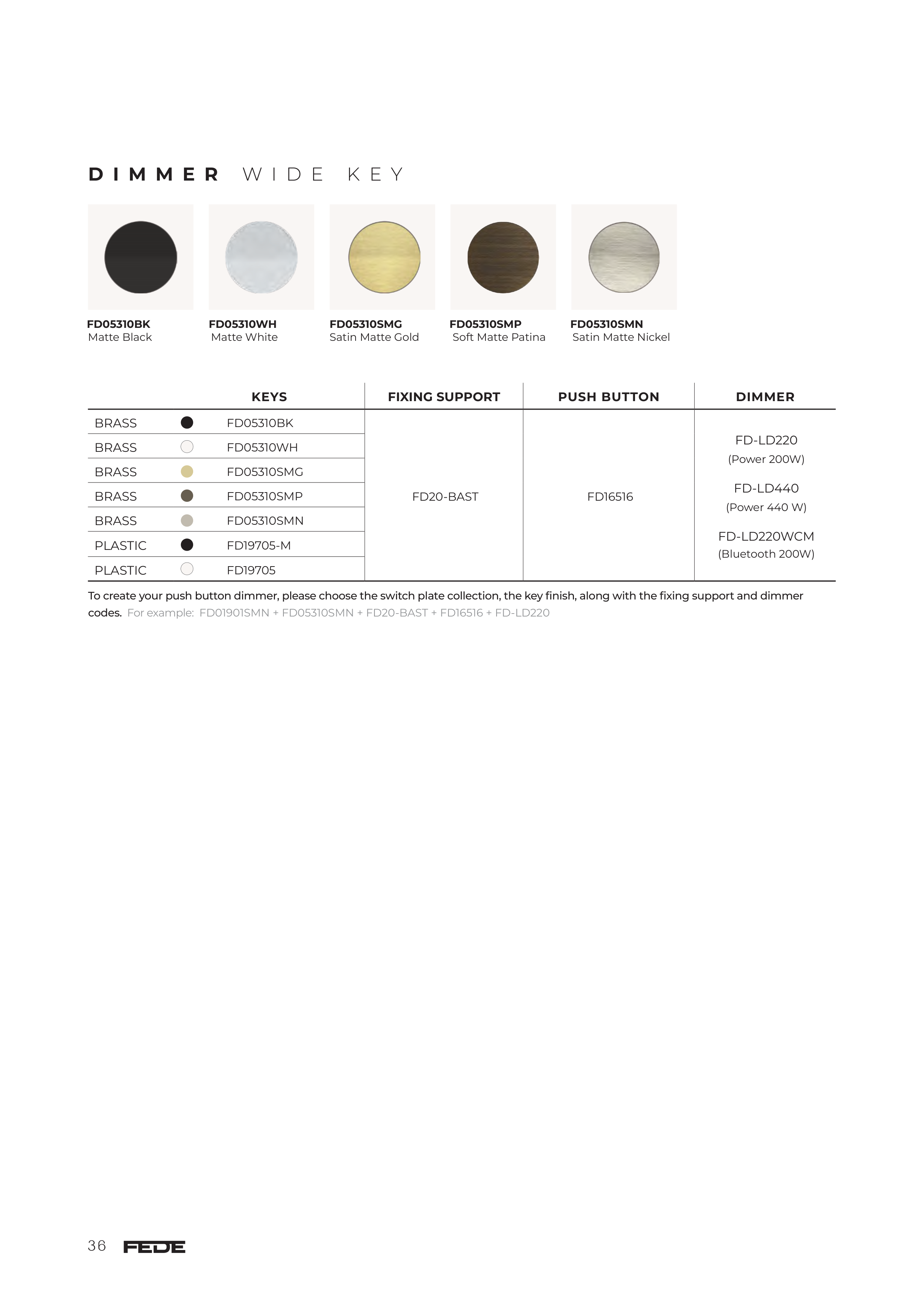To create your push button dimmer, please choose the switch plate collection, the key finish, along with the fixing support and dimmer