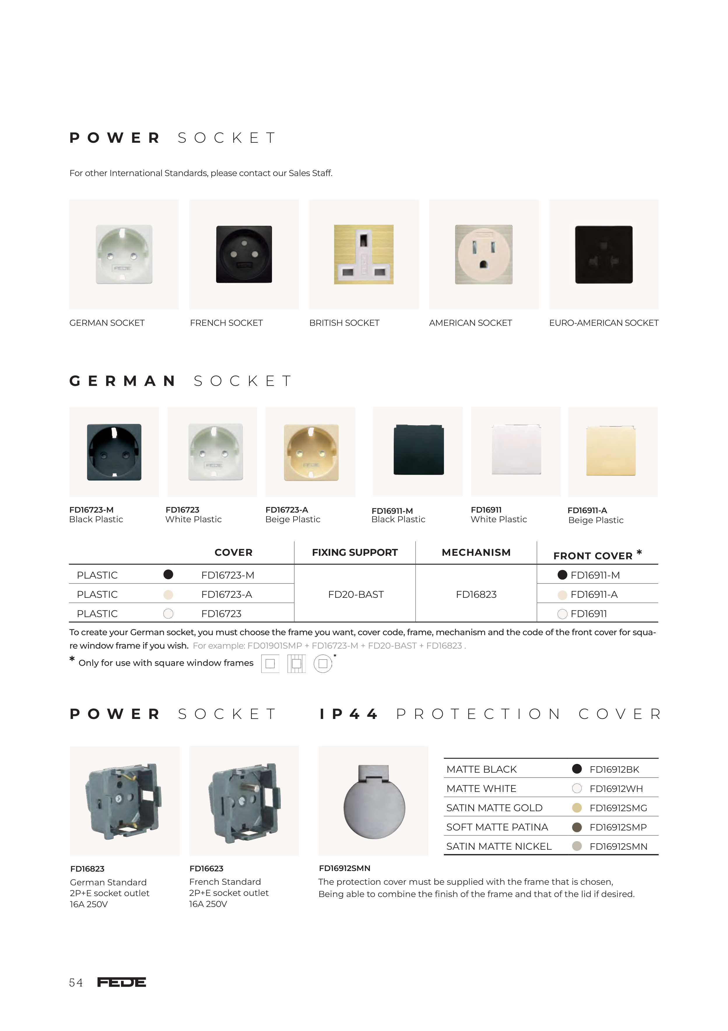 To create your German socket, you must choose the frame you want, cover code, frame, mechanism and the code of the front cover for squa-