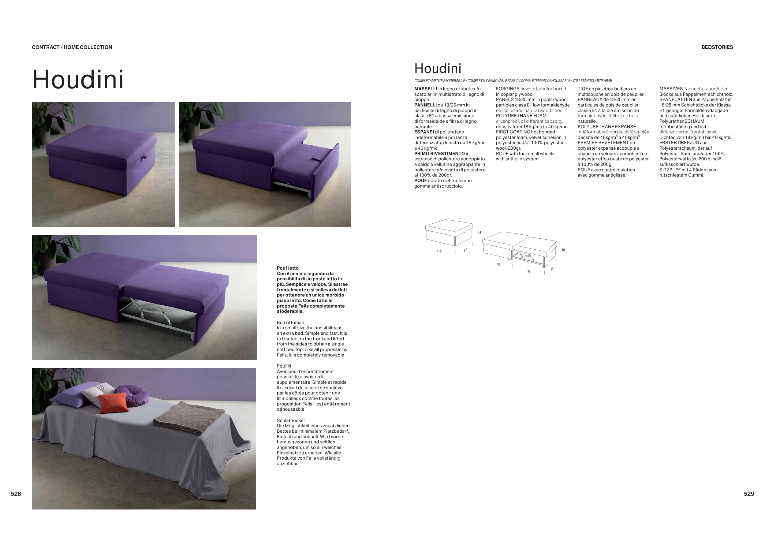 COMPLETAMENTE SFODERABILE / COMPLETELY REMOVABLE FABRIC / COMPLÈTEMENT DÉHOUSSABLE / VOLLSTÄNDIG ABZIEHBAR