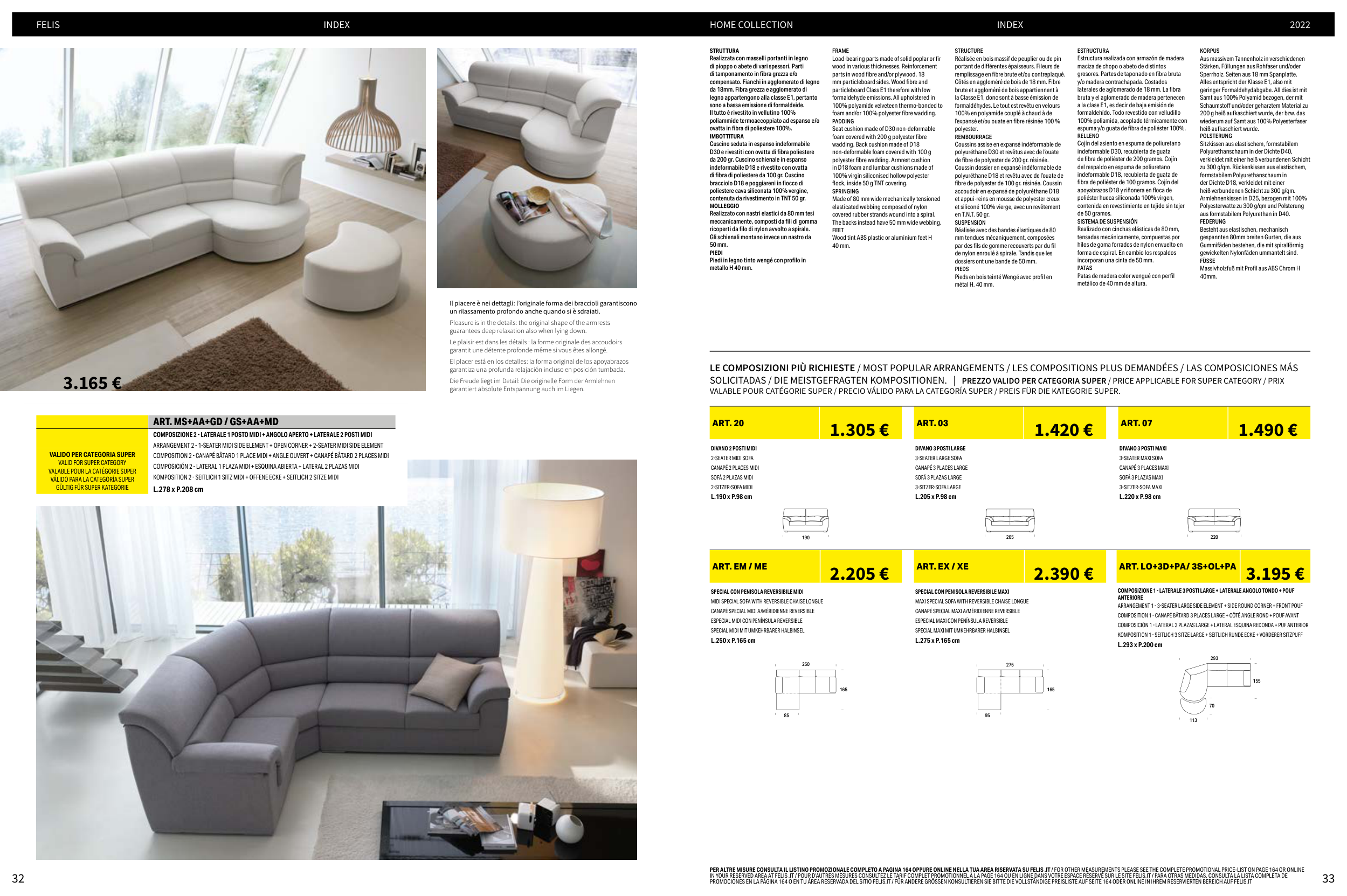 IN YOUR RESERVED AREA AT FELIS .IT / POUR D’AUTRES MESURES CONSULTEZ LE TARIF COMPLET PROMOTIONNEL À LA PAGE 164 OU EN LIGNE DANS VOTRE ESPACE RÉSERVÉ SUR LE SITE FELIS.IT / PARA OTRAS MEDIDAS, CONSULTA LA LISTA COMPLETA DE