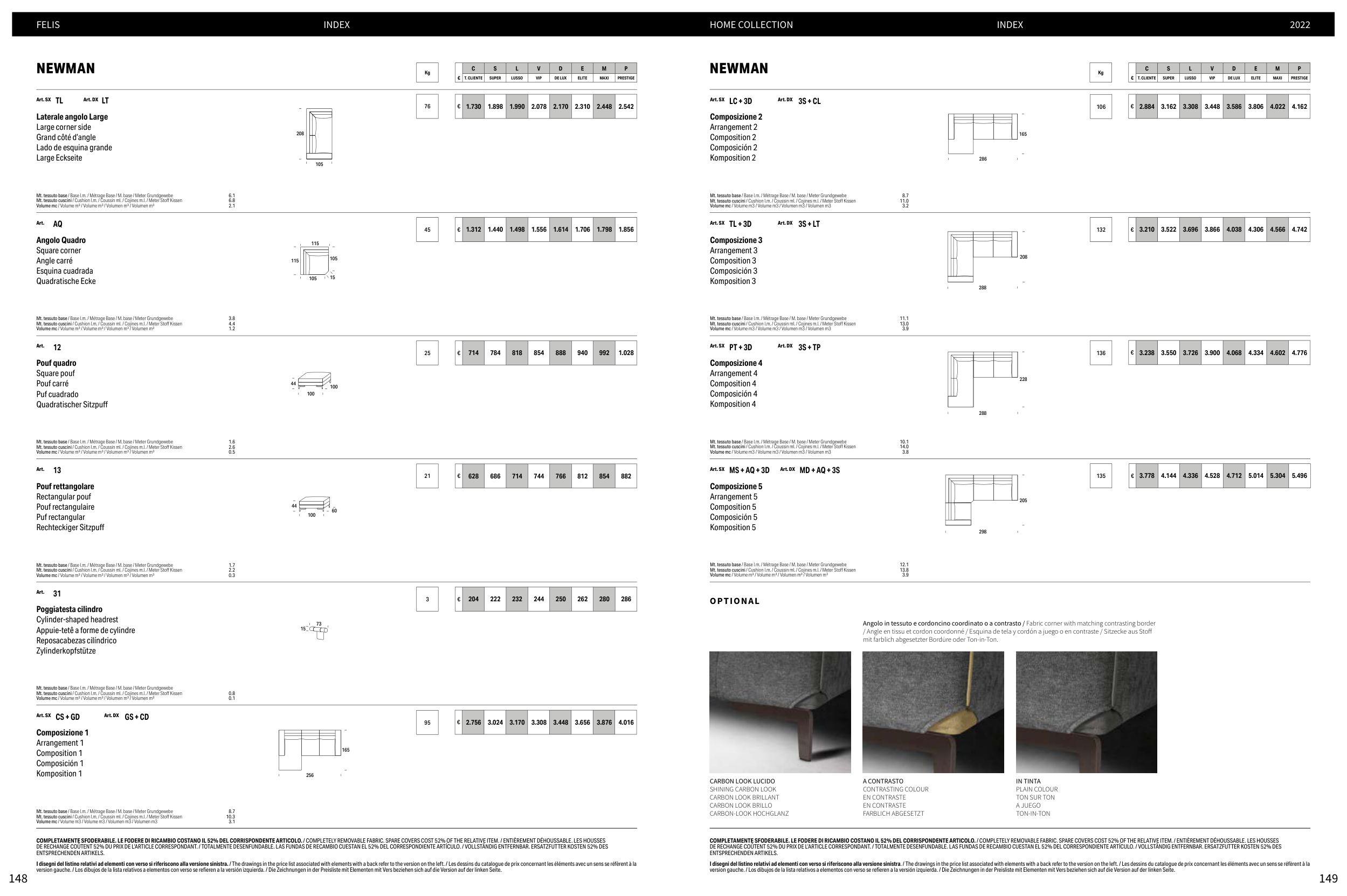 DE RECHANGE COÛTENT 52% DU PRIX DE L’ARTICLE CORRESPONDANT. / TOTALMENTE DESENFUNDABLE. LAS FUNDAS DE RECAMBIO CUESTAN EL 52% DEL CORRESPONDIENTE ARTÍCULO. / VOLLSTÄNDIG ENTFERNBAR. ERSATZFUTTER KOSTEN 52% DES